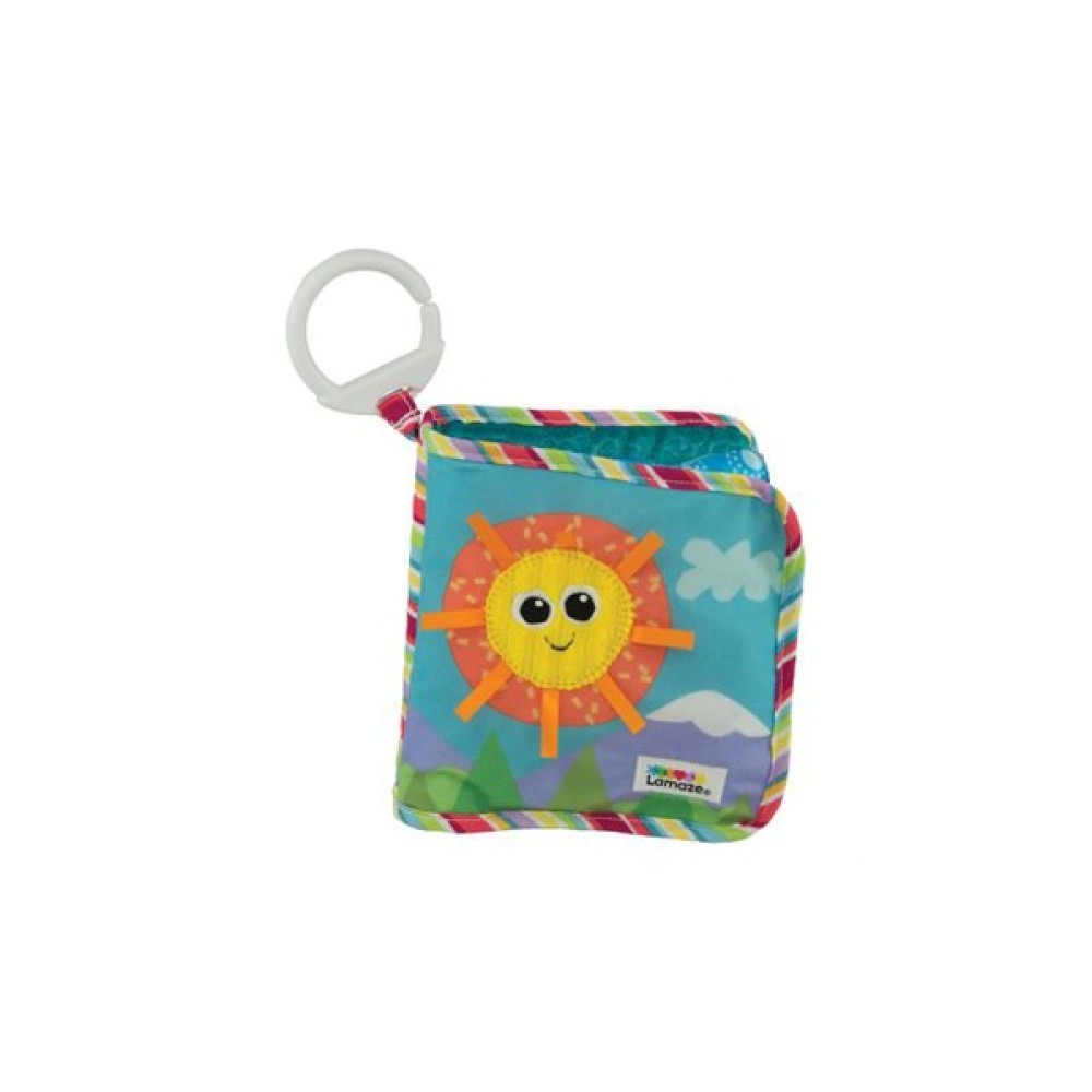 Звуки, які видають різні сторінки, заохочують сенсорне дослідження. Ідеально підходить для ігор із дитиною вдома або в дорозі. Просто прикріпіть книжку-іграшку до ліжечка, коляски або сумки для сповивання за допомогою фірмової зачіпки Lamaze.