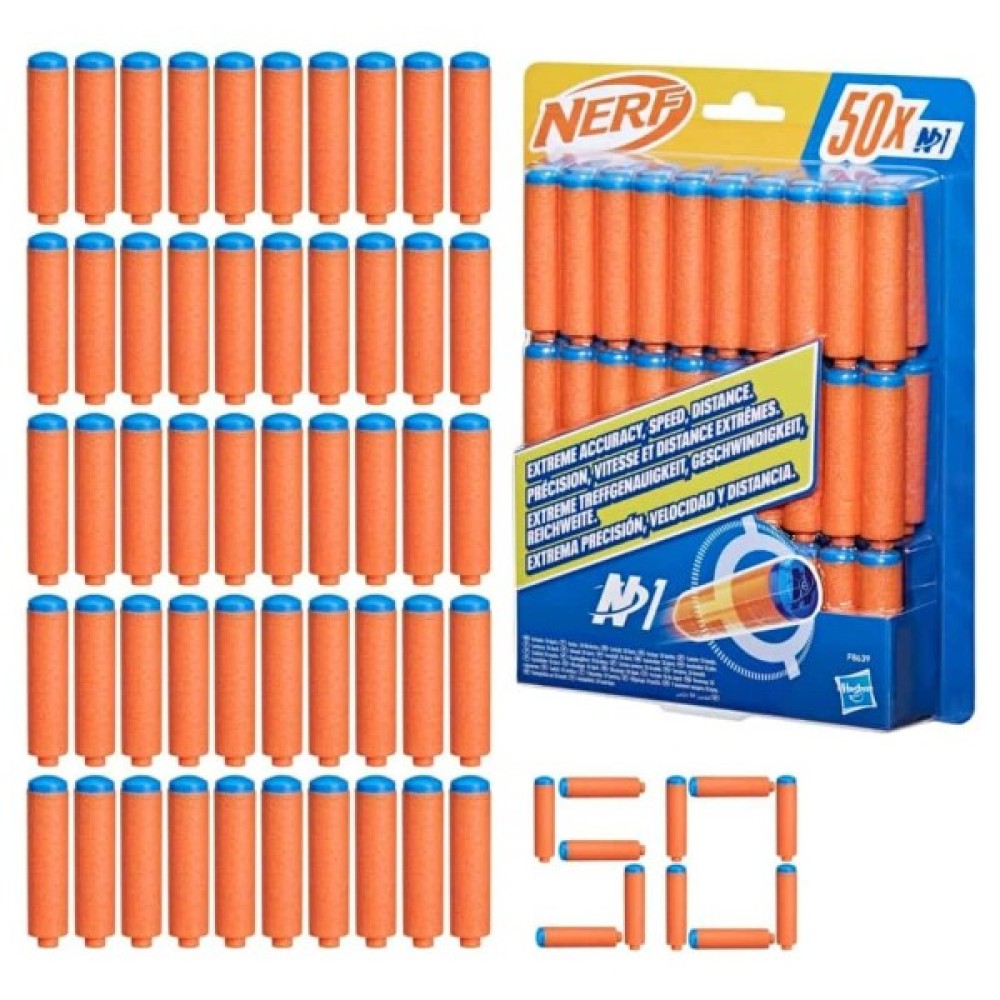 Набір дартсів Nerf N Series 50 штук містить 50 пінопластових дротиків, які сумісні лише з бластерами Nerf N Series.