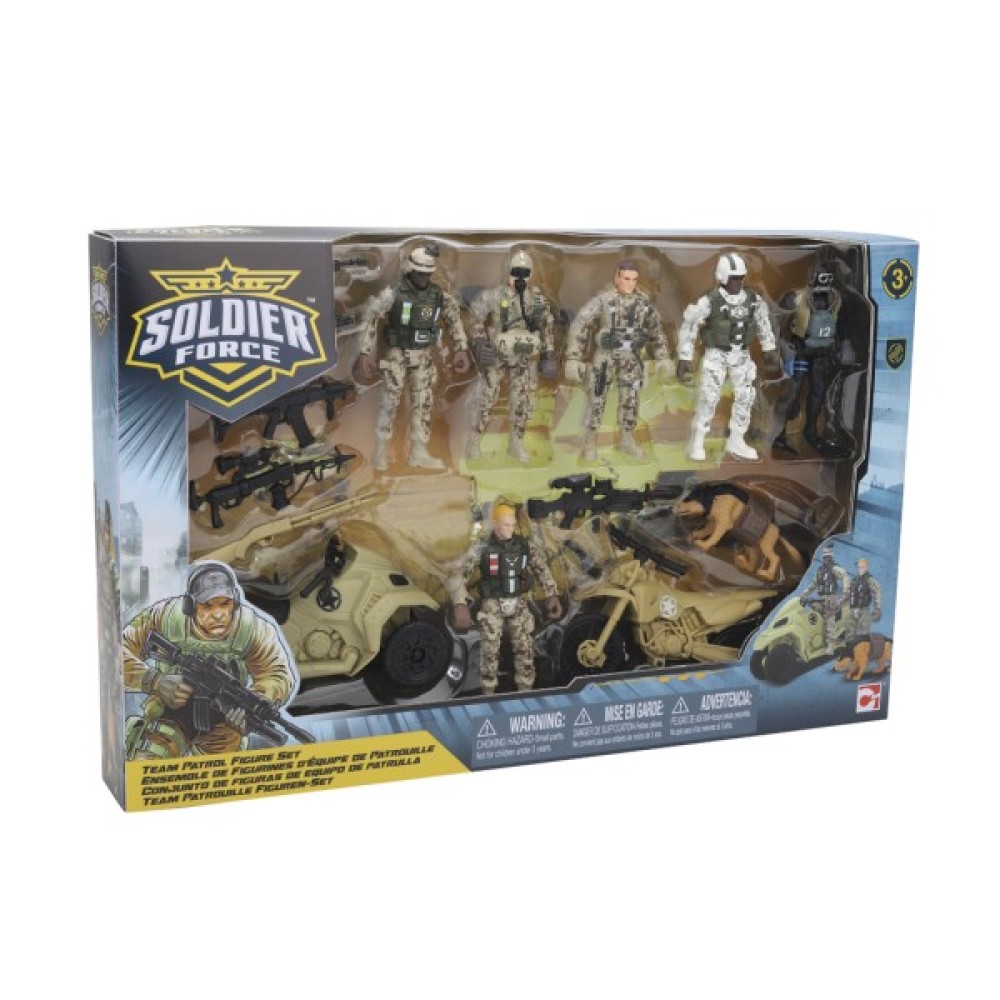 6 фігурок (солдатиків); 1 сторожовий пес; 2 транспортні засоби; аксесуари