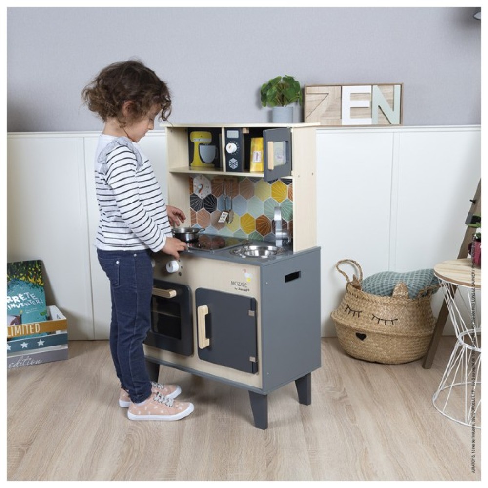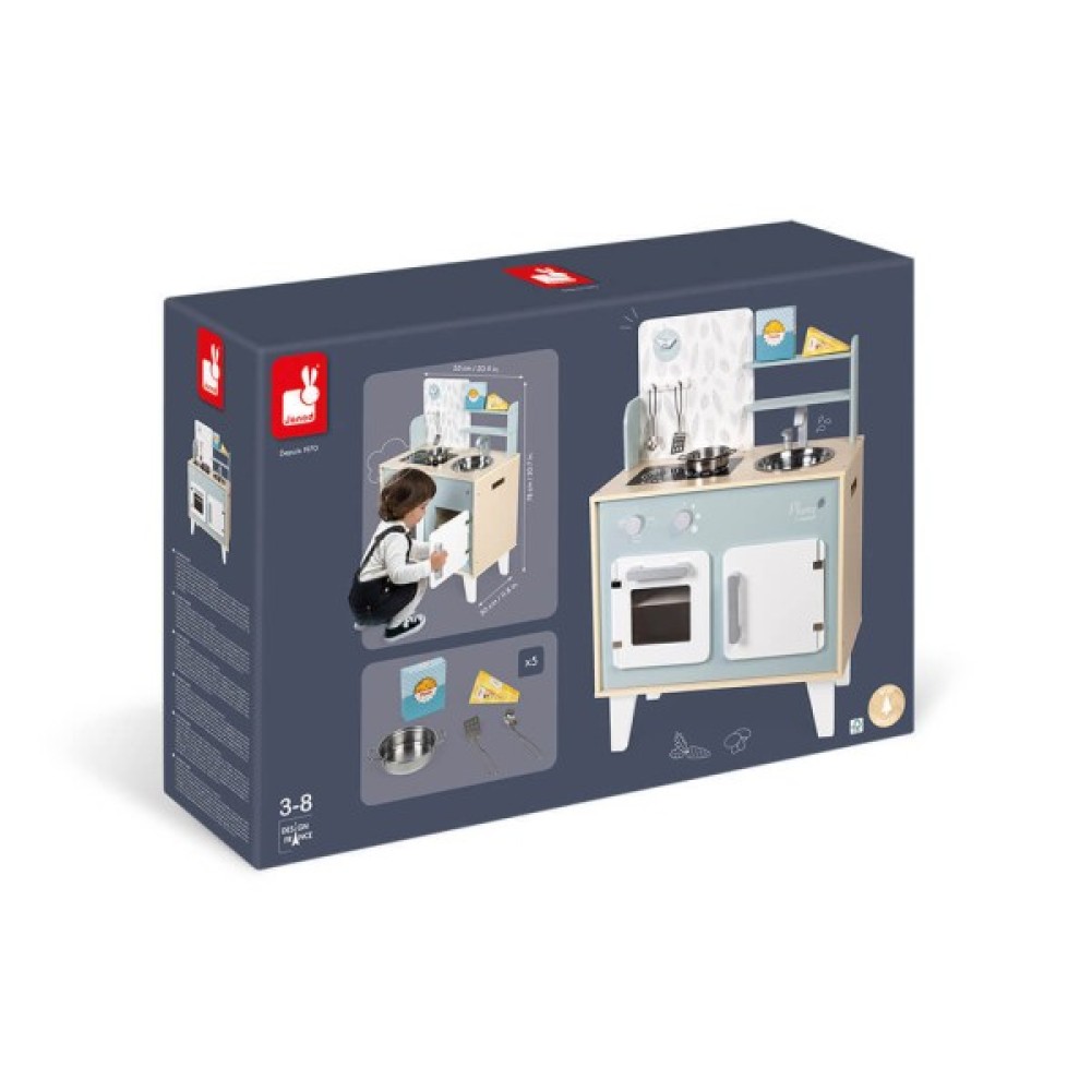 Поспішай. Все починається на кухні. З цим чудовим кухонним набором від Janod готуйте своїм друзям смачні страви, як мама і тато, і станьте Маленьким Шефом.