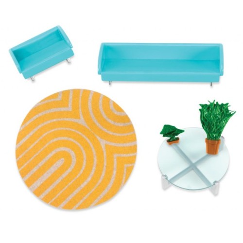 Меблі з серії "Міське життя" подарують вашій іграшковій вітальні яскравих барв та оригінальний дизайн. Набір добре доповнить колекцію іграшок LORI, він сумісний з усіма ляльками 15см. У комплект входять усі необхідні елементи для створення сучасної вітальні: диван, килим, крісло, кавовий столик і навіть кімнатна рослина – дерево Бонсай. Усі елементи набору виготовлені із текстилю і якісної пластмаси, та є абсолютно безпечними для малюків. Розмір упаковки: 26 х 9 х 17 см. Рекомендований вік: 3+.