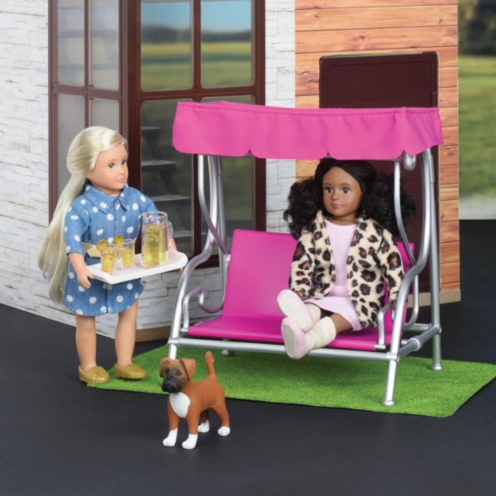 Як відомо, затишок має бути не лише всередині будинку або квартири, а й зовні. Чудовий набір для облаштування затишного саду або місця для відпочинку у дворі чи просто на балконі. Комплект меблів стане цікавим доповненням до іграшок LORI і буде заохочувати творчість і сюжетно-рольову гру у малечі. Окрім того, набір сумісний з усіма ляльками LORI 15 см. У комплекті набору «Меблі для вулиці»: гойдалка, трав’яний килим, таця, глечик та 2 склянки. Усі деталі виготовлені з текстилю та якісної пластмаси. Комплектація: 6 предметів. Розмір упаковки: 26 х 9 х 17 см. Рекомендований вік: 3+.