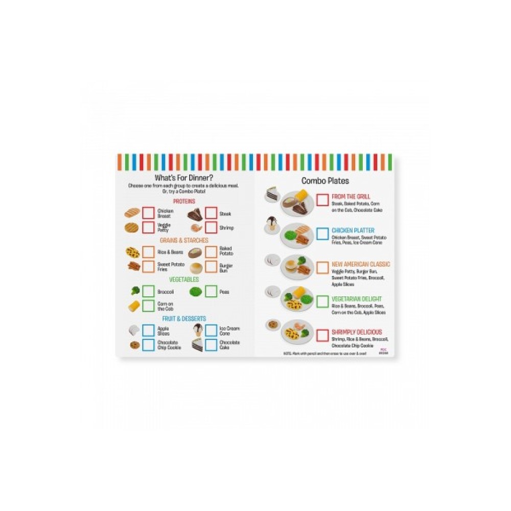 Продуктовий набір складається з 18 частин продуктів: стейк, куряча грудка, бобові, брокколі, яблука, шоколадний торт та інші продукти, які виготовлені з міцного реалістичного матеріалу. Також у набір входить меню та інформаційна карта.