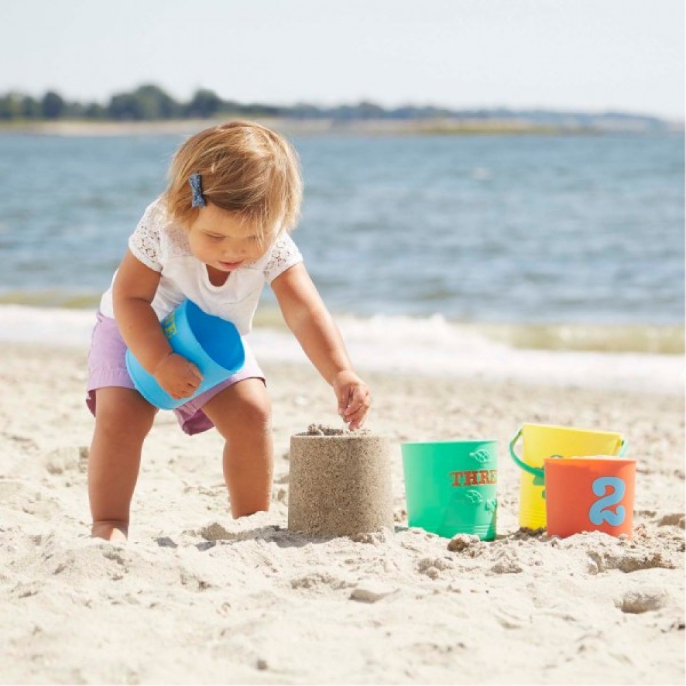 Помітний, відразу кидається в очі ігровий набір для піску зможе пожвавити будь-яку гру малюка. Кожне відерце - імпровізований будиночок для якого - небудь морського мешканця. Щоб дізнатися, хто де живе, дитині потрібно заповнити відерце піском, а потім перевернути його. І на "даху" цієї пасочки виявиться звірятко! Для зберігання і перенесення все відерця складаються у велике жовте, у нього є спеціальна міцна ручка для перенесення.