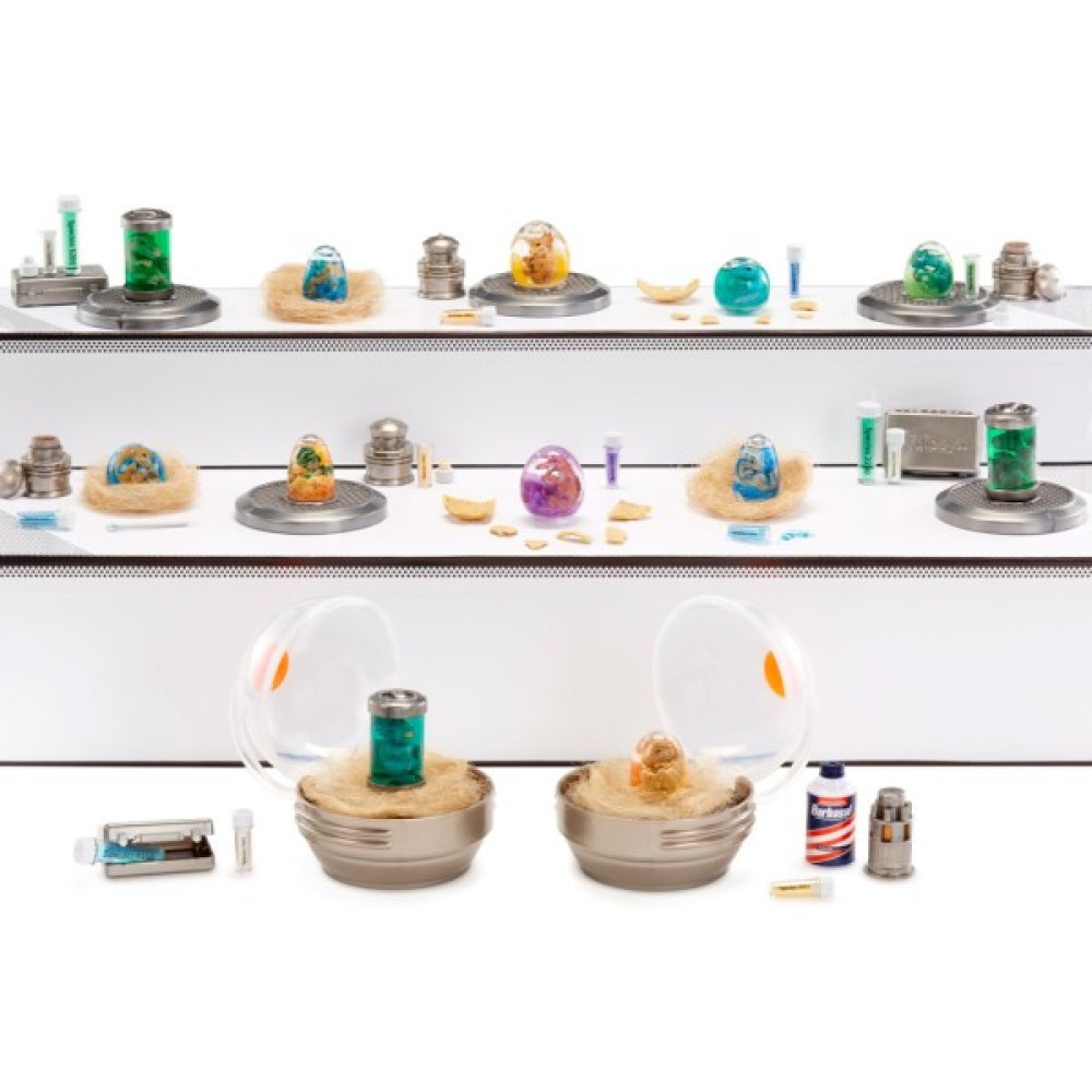 • набір для створення динозавра (фігурка у яйці або капсулі, пробірка з рідиною, пробірка з гліттером, піпетка, ложка),