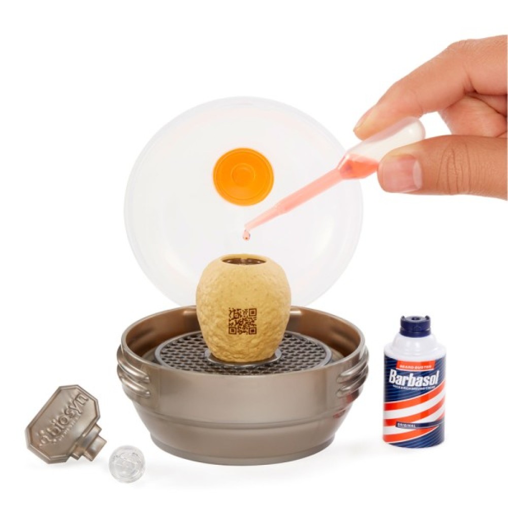 • Створіть! Порівняйте вміст кульки з листом колекціонера, щоб визначити, який динозавр потрапив саме до вас. За інструкцією введіть «гліттерний ДНК-порошок» і рідину в яйце або циліндр, струсіть — і спостерігайте, як з’являється ваш іграшковий динозавр. Це науковий експеримент у мініатюрі!