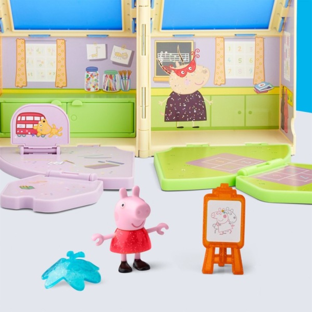 Пеппа вирушає в дитячий садок, де на неї чекає справжнє свято творчості та розваг! Цей набір легко розкладається у форматі Pop-Up, перетворюючись на класну кімнату з яскравими меблями, гіркою та аксесуарами. Маленькі шанувальники зможуть уявити, як Пеппа малює, грається, створює маски та весело проводить час із друзями. Починайте веселощі з Пеппою!