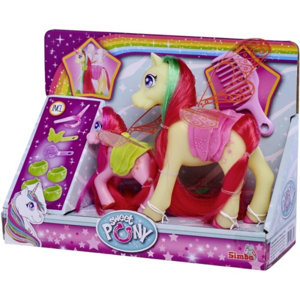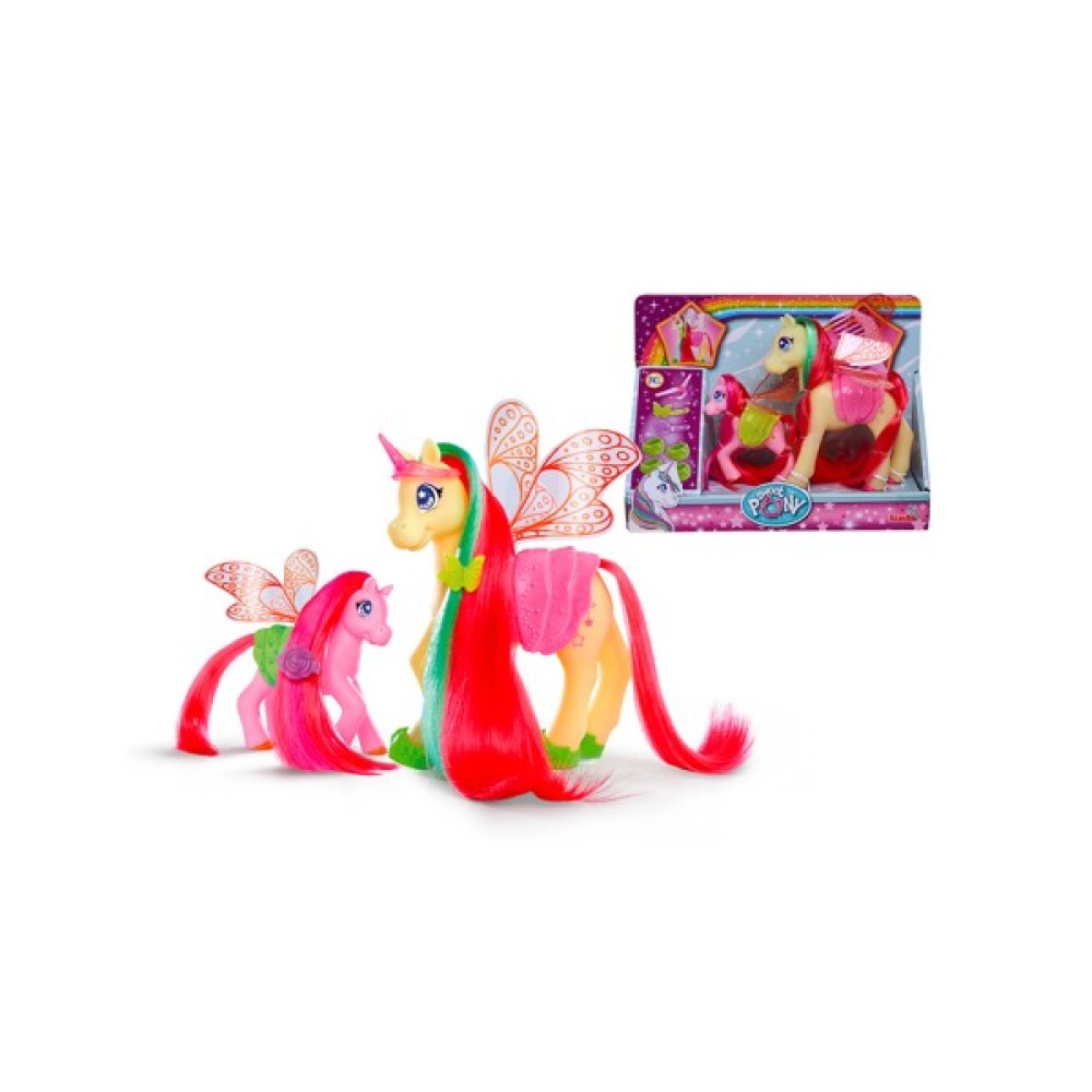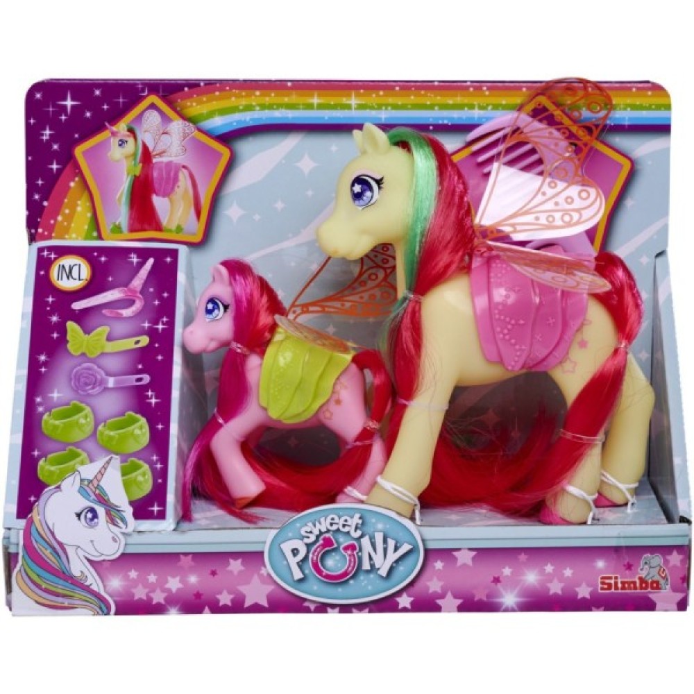 Бренд Simba представляє вам сім'ю з двох поні різного розміру з яскраво - кольоровими гривами і напівпрозорими невагомими крилами.