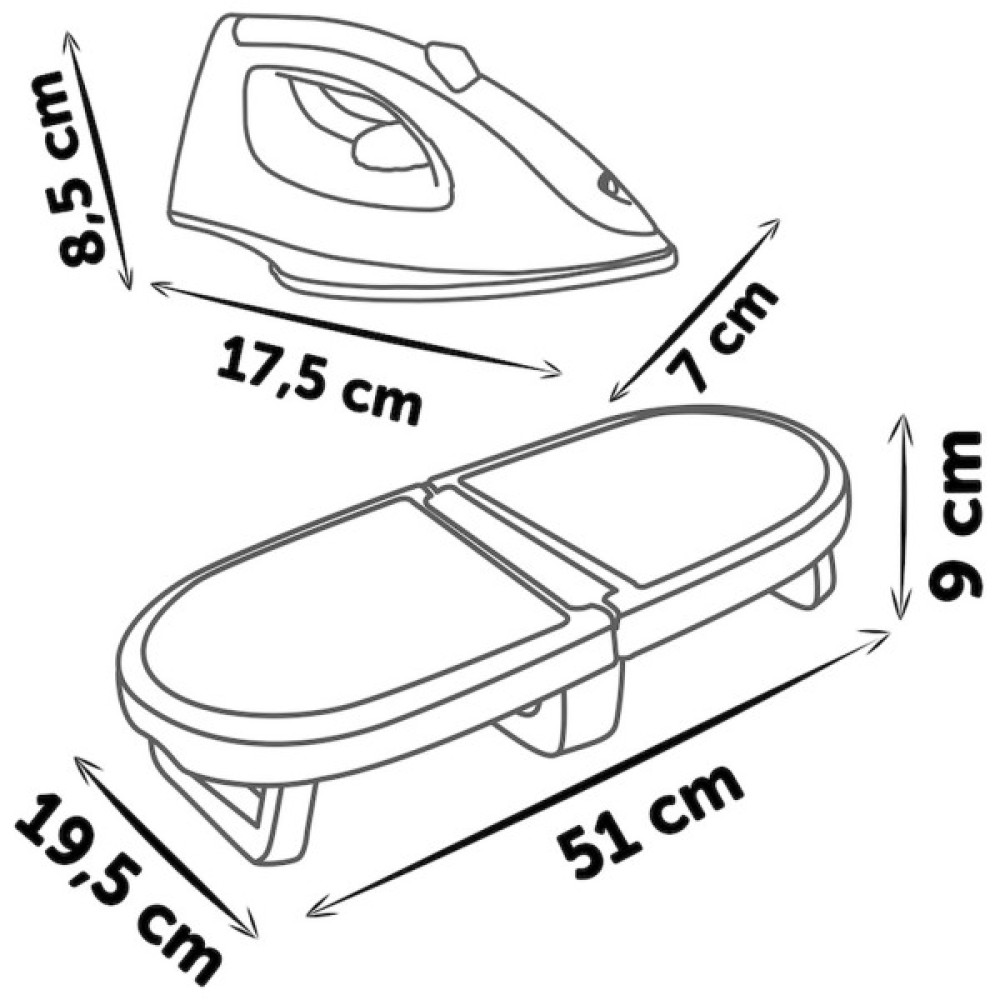 Компактна та зручна складна конструкція дозволяє легко зберігати набір навіть у невеликих кімнатах, а елегантний сучасний дизайн і стильні кольори роблять його яскравою окрасою дитячої. Прасувальна дошка має стійку до подряпин поверхню IML, а вбудована полиця забезпечує порядок під час гри — усі аксесуари завжди під рукою.