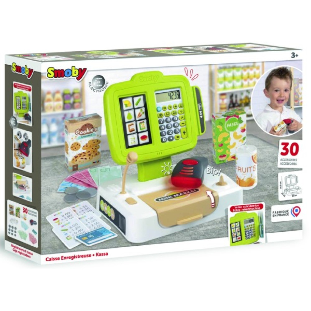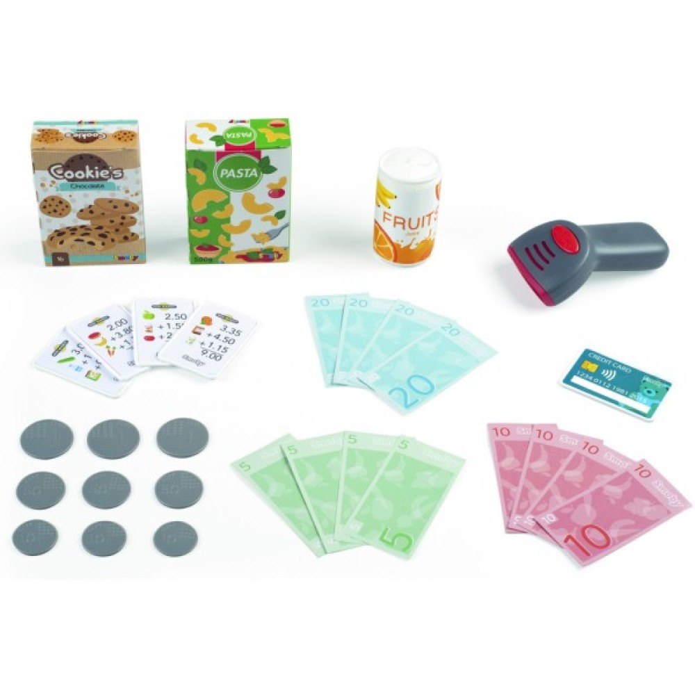 Діти люблять почуватися дорослими і вигадують різні сценарії гри продавець - покупець. Компанія Smobyпредставляє яскравий набір "Електронна каса" зі сканером. У наборі є все необхідне, щоб дитина відчула себе як у справжньому маркеті. Обслуговуючи покупця, проскануйте товари та порахуйте суму на калькуляторі. Звуковий та світловий сигнал надасть реалістичності скануванню. Гроші зручно зберігати у ящику під касовим апаратом. На випадок, якщо раптом покупець вирішить розрахуватися карткою, не забудь йому видати чек. У набір входить 27 аксесуарів: монети, паперові гроші, картонні коробочки, картка до терміналу, чеки терміналу. Граючи, діти вчаться рахувати. Набір виготовлений із високоякісного пластику та має детальний, сучасний дизайн.