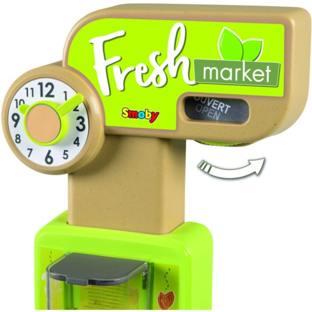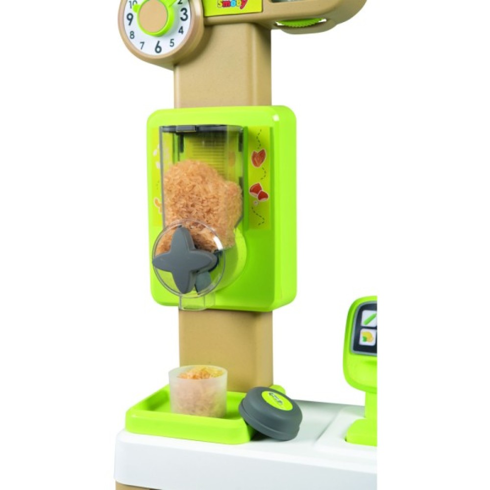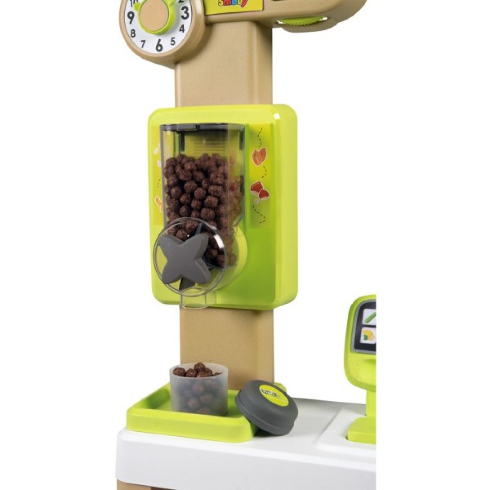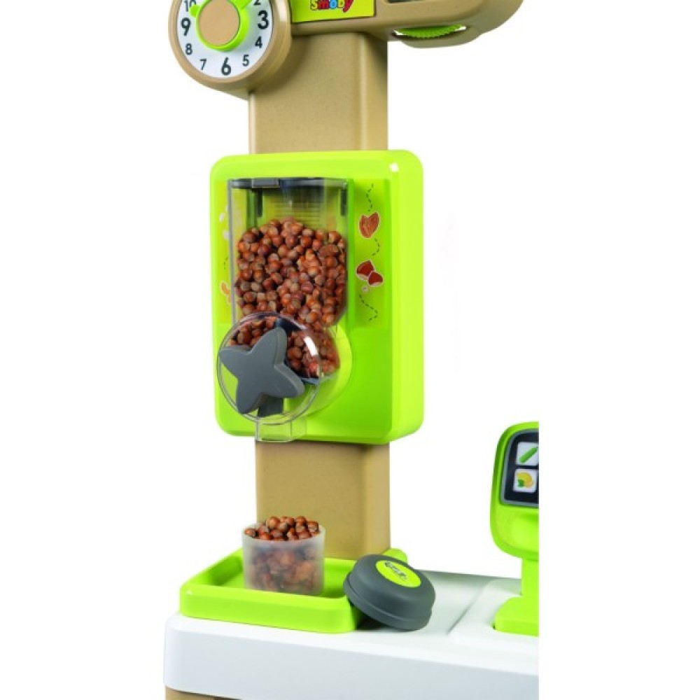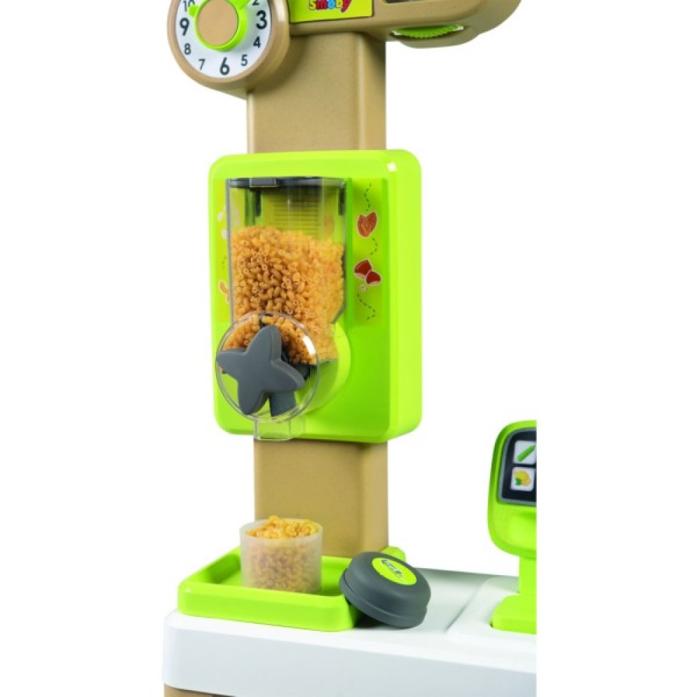 У набір входить 44 аксесуари: 4 чека, сканер, термінал, іграшкові гроші, баночки з напоями, овочі та фрукти, 4 картонні коробочки, 2 баночки йогурту, баночки для сипучих товарів.