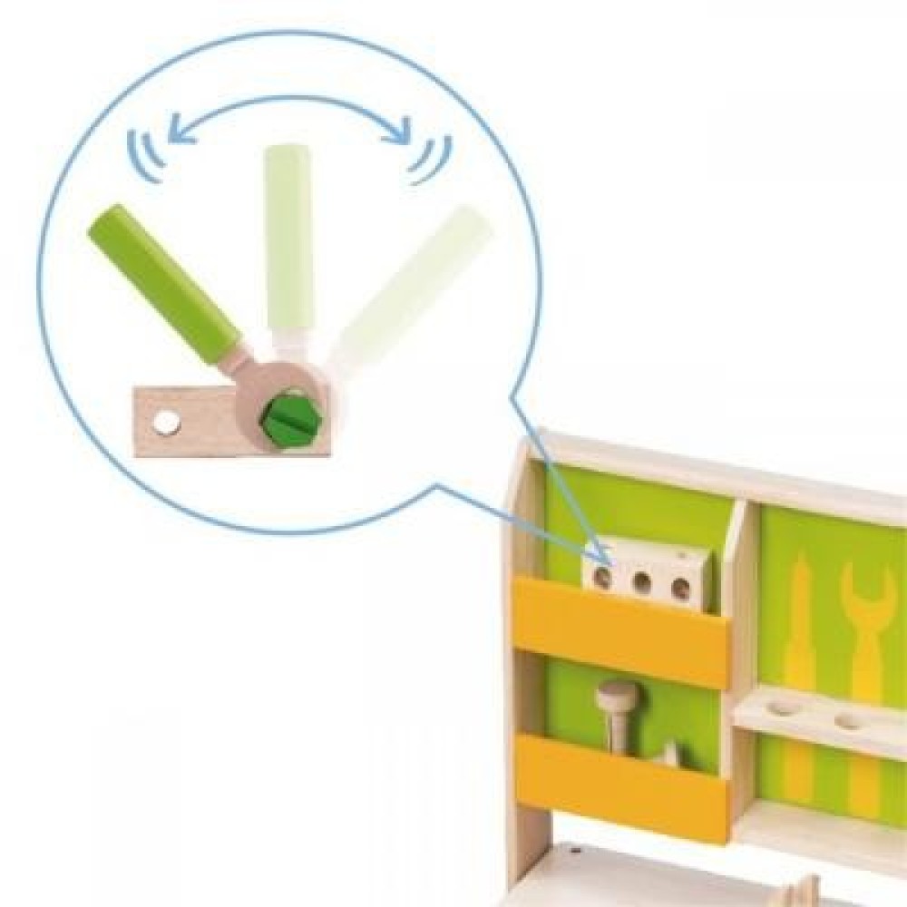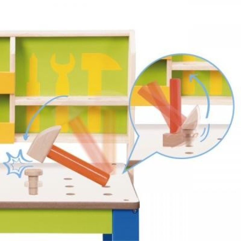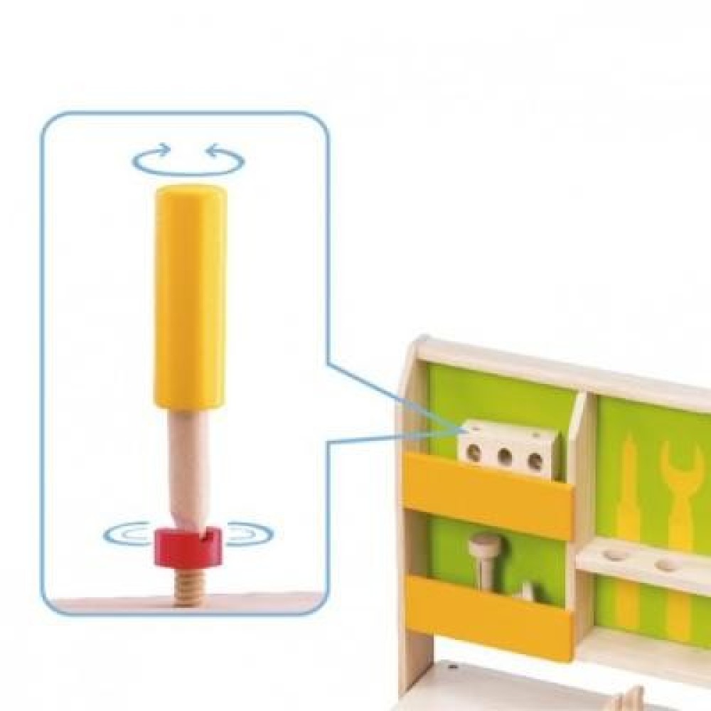 Сюжетно-рольовий набір «Стіл теслі» таїландського бренду Wonderworld. З допомогою такого набору дитина створить власне робоче місце теслі. Тепер юні майстри можуть допомагати татові лагодити щось за допомогою інструментів з набору. Іграшка розвиває творчі навички та вміння використовувати основні інструменти, а також розвиває дитину фізично. Деталі з деревини та фанери. Перед початком гри, іграшку потрібно зібрати. Для цього вам знадобиться лише викрутка. Для дітей від трьох років.