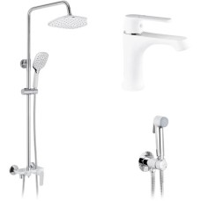 Виробник: Kroner Модель: Armada-W063 + змішувач Armada-W010 + змішувач Bide Артикул: CVS30213 Комплектація: ручна лійка; тримач для душу; верхній душ; душова штанга; змішувач; душовий шланг; перемикач Діаметр верхнього душу, см: 26.5 х 19.5