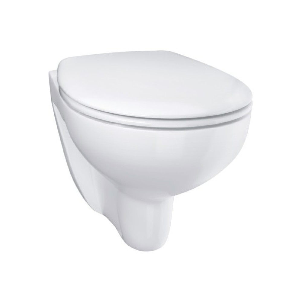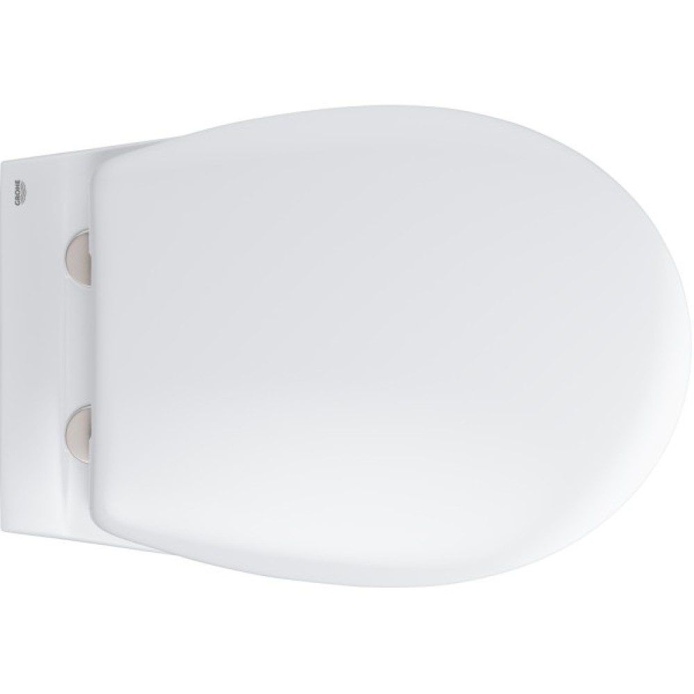 Представлений тут комплект 39586000 від GROHE складається з інсталяції Rapid SL 38528001, підвісного безобідкового унітаза Bau Ceramic 39427000 зі швидкознімним дюропластовим сидінням 39493000 і кришкою з механізмом плавного закривання SoftClose, панелі змиву Skate Cosmopolitan 38732000, зливного бачка GD 2, 6-9 л, звукоізолювальної прокладки 37131000 і набору кріплень для інсталяції 3855800M.