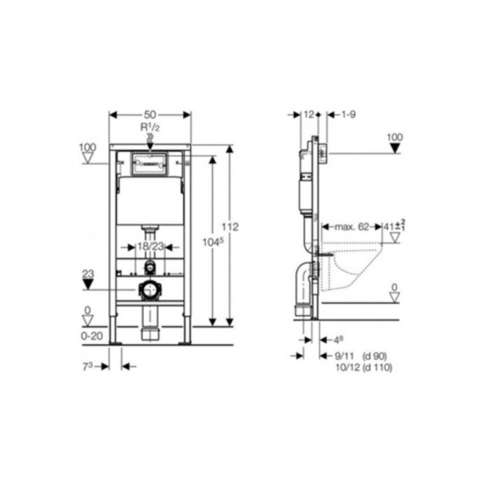 • для підвісних унітазів з розмірами підключення згідно en 33: 2011