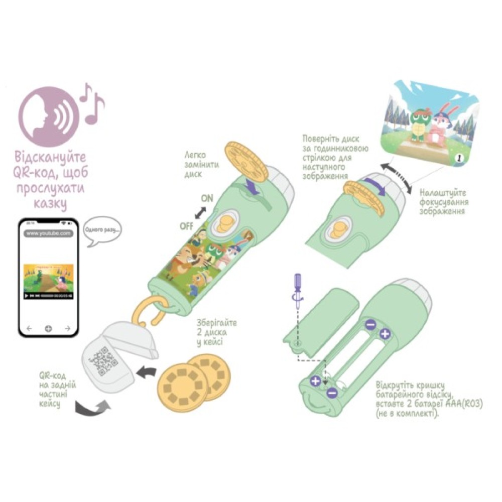 • Яскраві зображення, що відтворюються на стіні під час казки.
