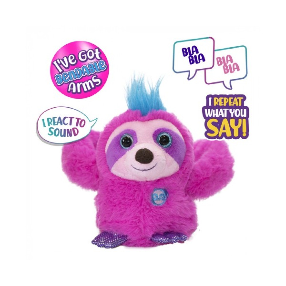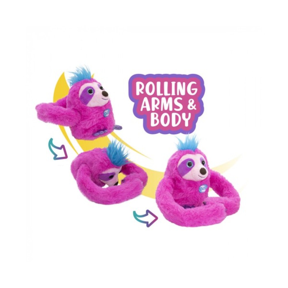 Рожевий лінивець Слоуї – найшвидший обіймач у джунглях! Його гнучкі руки дозволяють повісити його будь-де! Здивуйте своїх друзів його веселими рухами! Він падає і котиться, рухаючись уперед і назад! Найчарівніший лінивець, з яким можна грати!