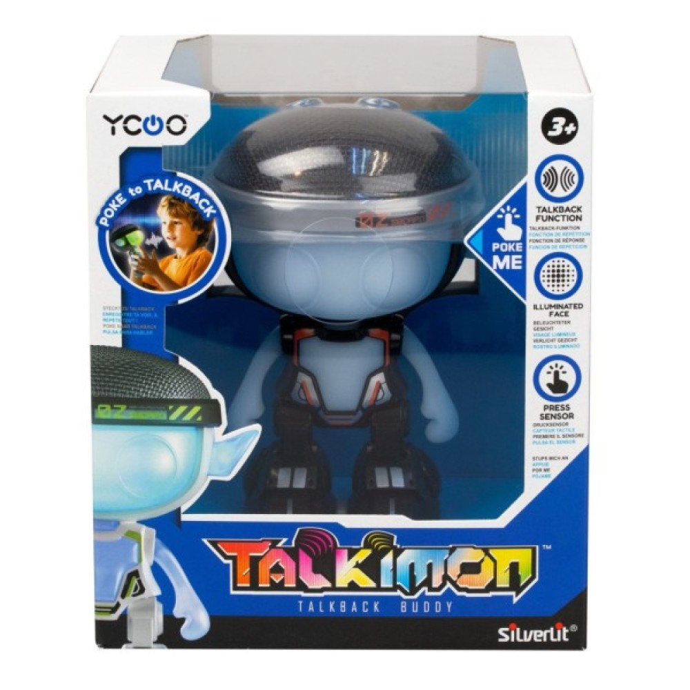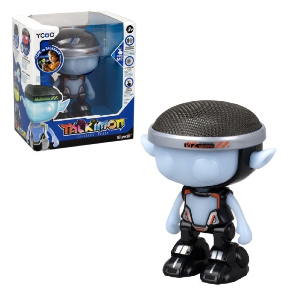 Такі схожі на фантастичних прибульців – нові роботи TALKIMON. Вироблені з пластику та м’якого силікону, вони запам’ятовують та повторюють, що ви кажете! А ще вони мають декілька режимів зміни голосу. Для цього необхідно натиснути їм на обличчя. Бажаємо веселої гри!