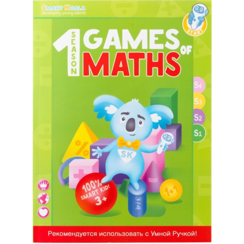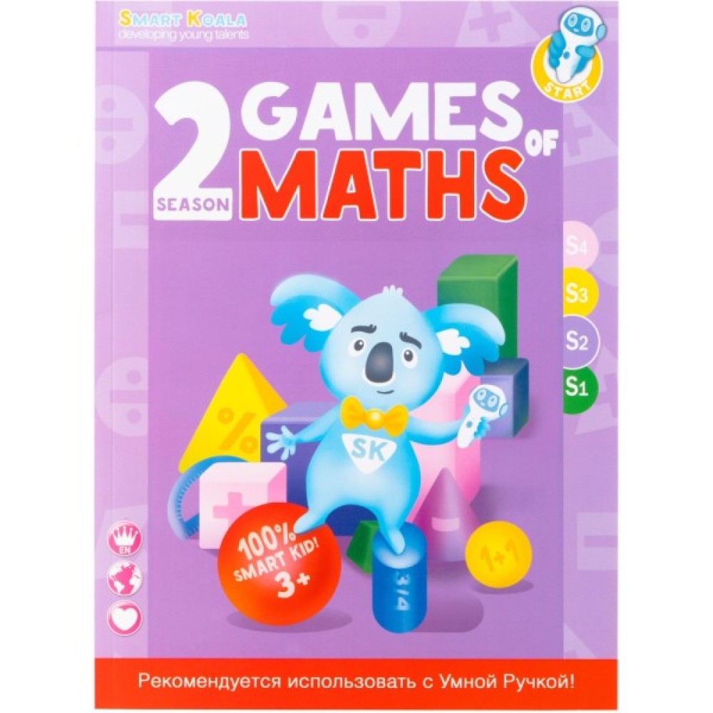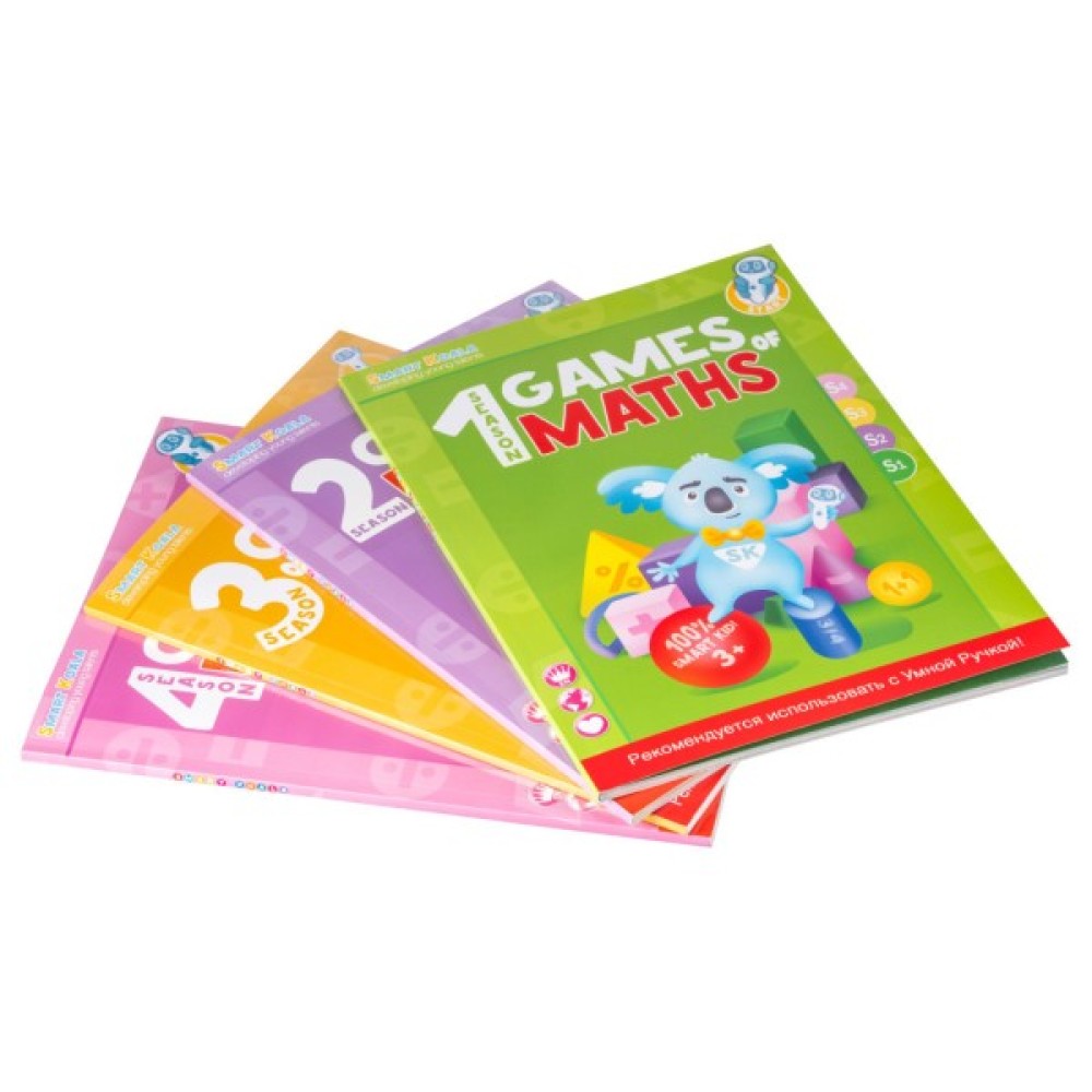 Ігри математики: сезони 1-2-3-4 складаються з 70 математичних наук в кожній книзі; 200 ігор на обчислення, пам'ять, логіку; до 80 завдань для обговорення, аудіо супровід англійською, українською, російською мовами. Рекомендується використовувати з Розумної Ручкою. Дітям від 2 років.