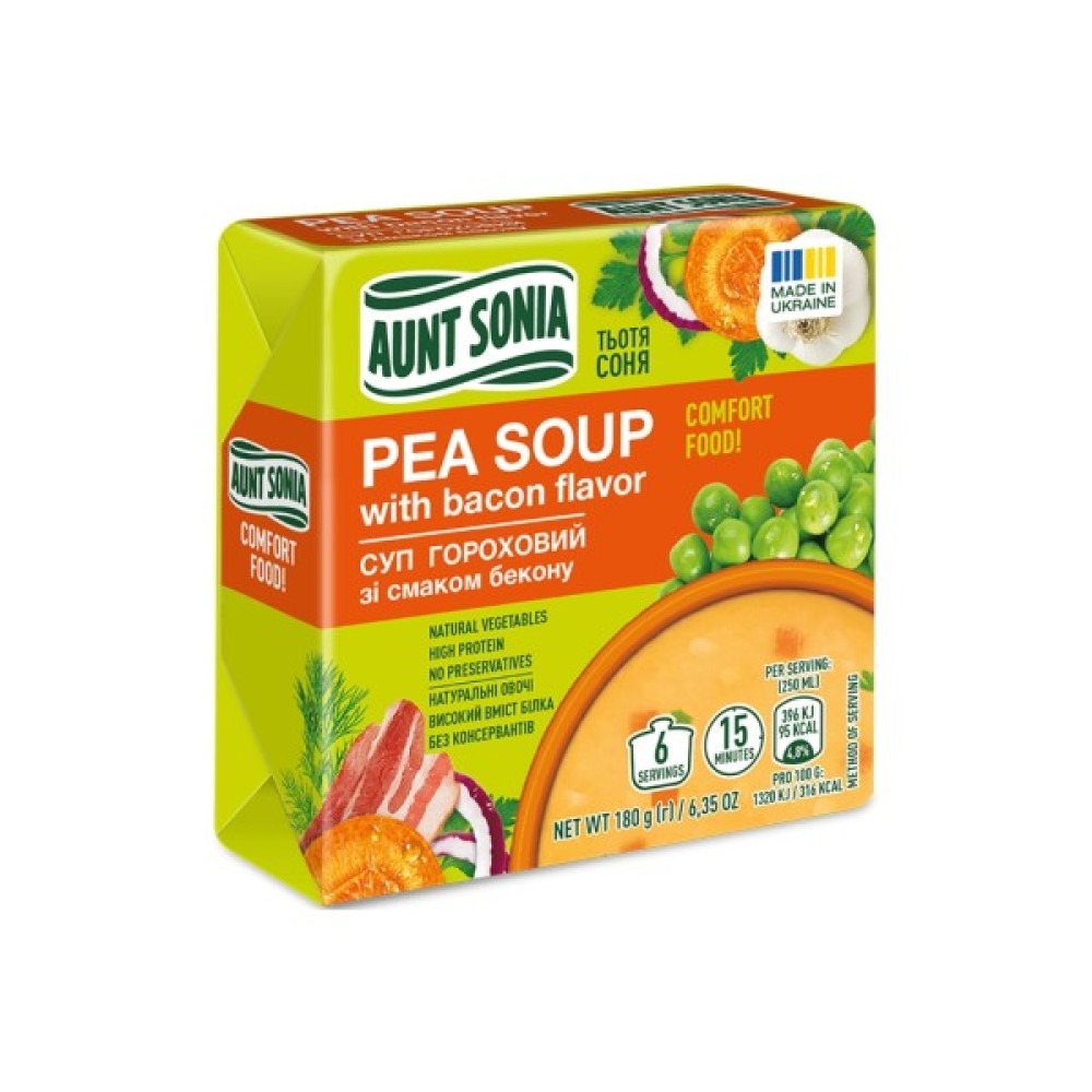 Вид фасування: брикет, 180 г, 6 порцій – 1,6 літра готового супу.