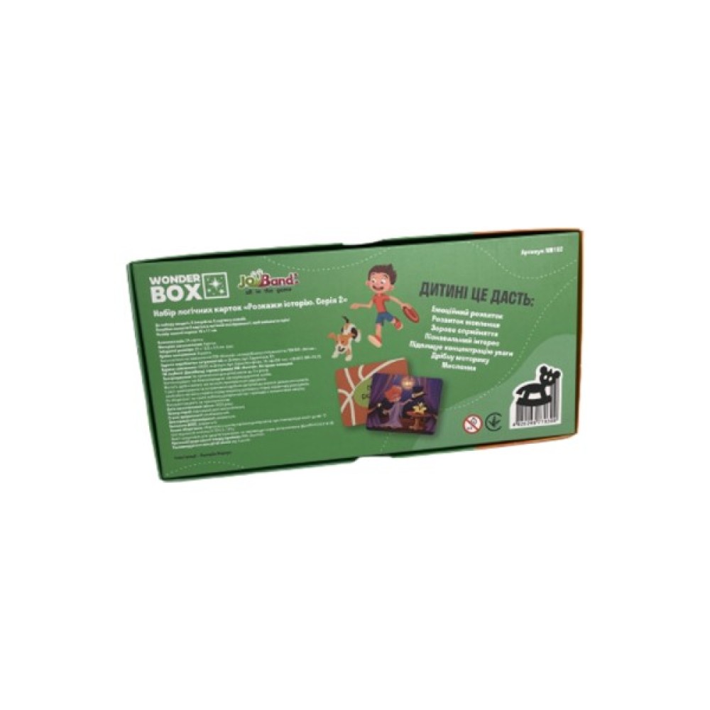 Настільна гра JoyBand Набір логічних карток Розкажи історію Серія №2 (WB102) — це яскраве занурення у світ фантазії та логіки, створене спеціально для дітей від 3 років. Цей набір карток є ідеальним інструментом для розвитку мовних та креативних здібностей ваших дітей, вдосконалюючи їхню здатність розповідати захоплюючі історії.
