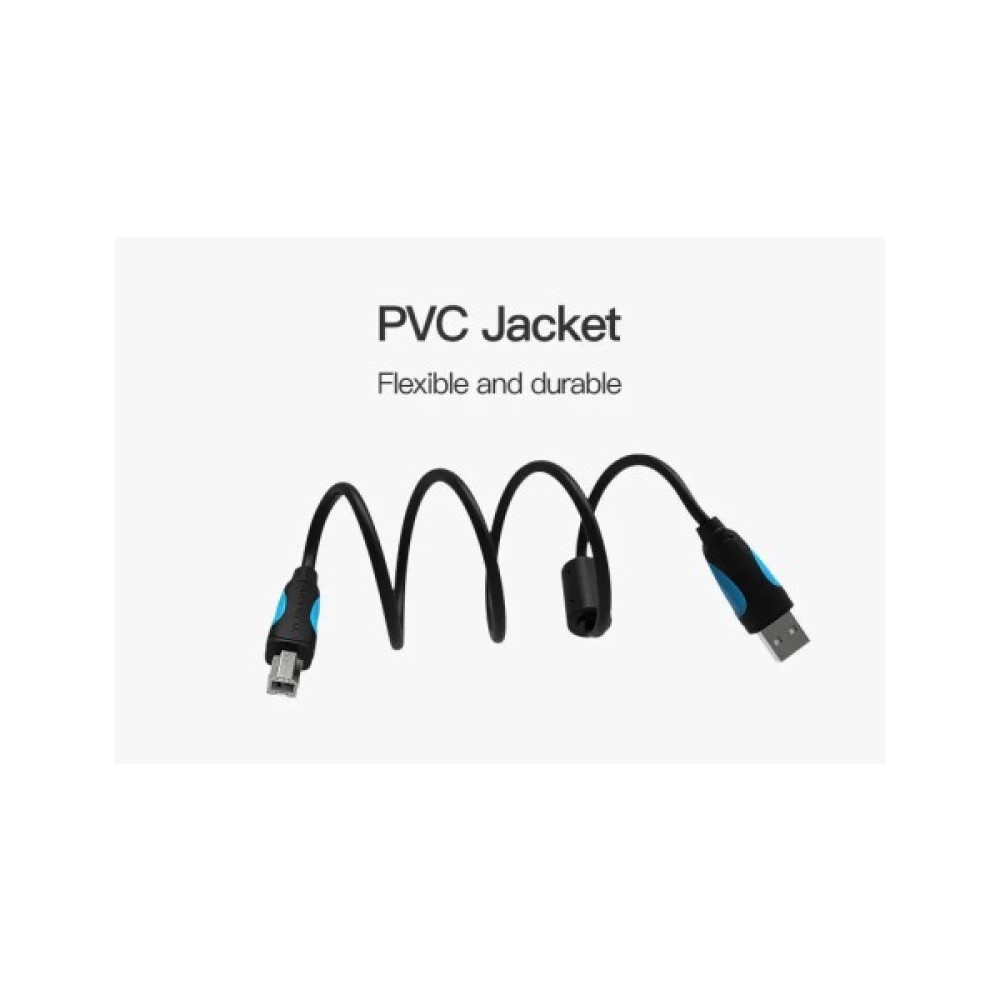 Кабель для принтера Vention USB A Male - B Male Print — використовується для підключення до компютера принтерів, сканерів та будь-якої USB-сумісної периферії. Кабель виготовлений із високоякісного поліхлорвінілу, жили провідників відлиті із чистої безкисневої міді, а ізолятор виготовлений із спіненого поліетилену. Нерозбірна конструкція розʼєму залита гнучким пластиком, що забезпечує надійність та довговічність у роботі дроту.