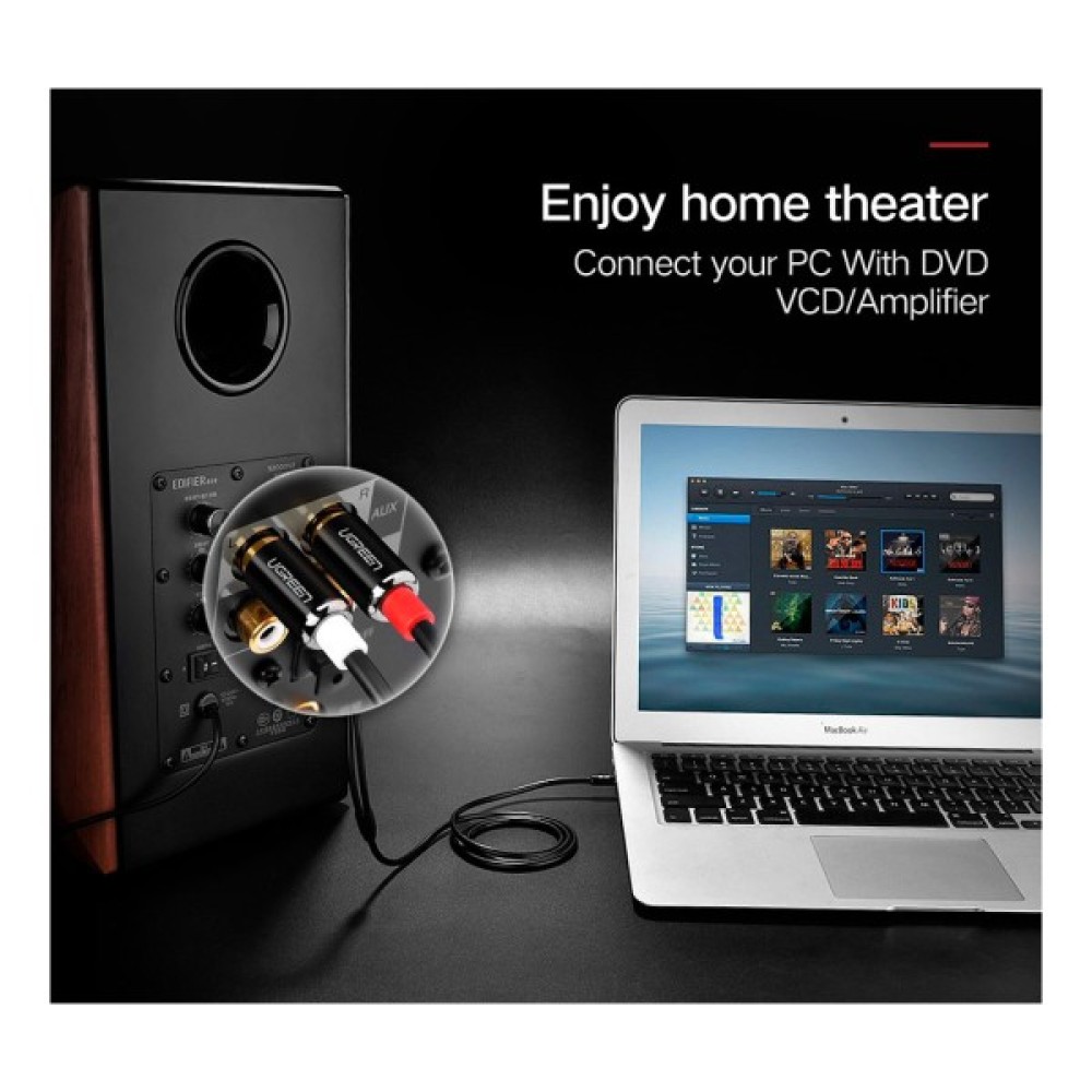 Кабель Ugreen AV116 3.5 mm to 2RCA Audio Cable призначений для з'єднання аудіовходів/виходів мультимедійних та аудіопристроїв (звукових адаптерів комп'ютерів, побутової аудіоапаратури тощо). Кабель Ugreen AV116 3.5 mm to 2RCA Audio Cable виготовлений із міді, а конектори поміщені в надійні металеві гільзи, що забезпечує тривалу роботу кабелю без збоїв.
