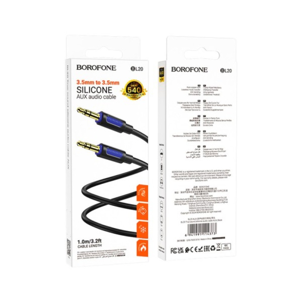 Аудіокабель BOROFONE BL20 3.5 mm to 3.5 mm — це високоякісне рішення для передачі аудіосигналу між будь-якими пристроями з роз’ємами 3.5 мм.