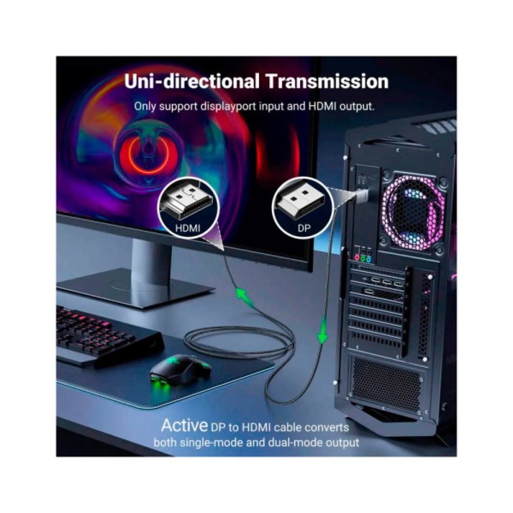 Примітка: це односторонній кабель 4K DP-HDMI. Передача відеосигналу здійснюється лише з DisplayPort у HDMI, а не навпаки.