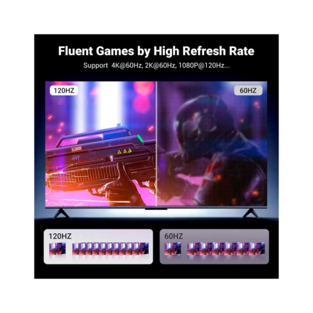 Кабель DisplayPort to HDMI підтримує роздільну здатність до 4K-60 Гц (зворотна сумісність із 2K-60 Гц та 1080P-120 Гц) і дарує реалістичні відчуття від перегляду 3D-контенту. Завдяки підтримці HDR зображення стають яскравішими, кольори насиченішими, а контрастність вищою порівняно зі звичайним цифровим відео. Кабель відповідає стандарту HDMI 2.0, тому кінцева глибина кольору, формат та роздільна здатність залежать від налаштувань ПК, кабелів та моніторів.