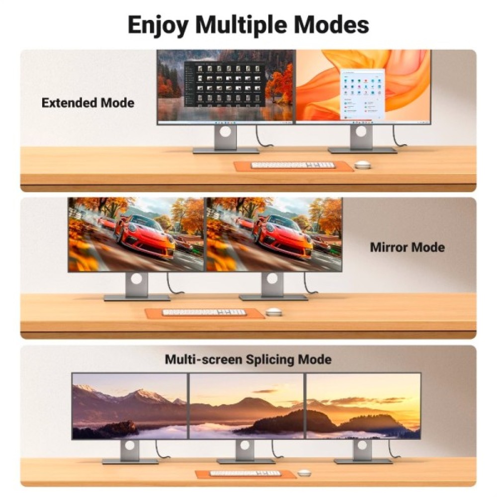 Сумісність із ноутбуками з підтримкою DisplayPort (HP ProBook EliteBook, ThinkPad), настільними комп'ютерами (HP, Dell Optiplex/Precision/xps), графічними картами (AMD, NVIDIA) та іншими пристроями. Підключення до телевізора з підтримкою HDMI, проєктора, монітора, гарнітури віртуальної реальності або іншого пристрою для відтворення відео та звуку. (Примітка: несумісний з HDMI-пристроями, такими як MacBook, PlayStation, Switch і Xbox).