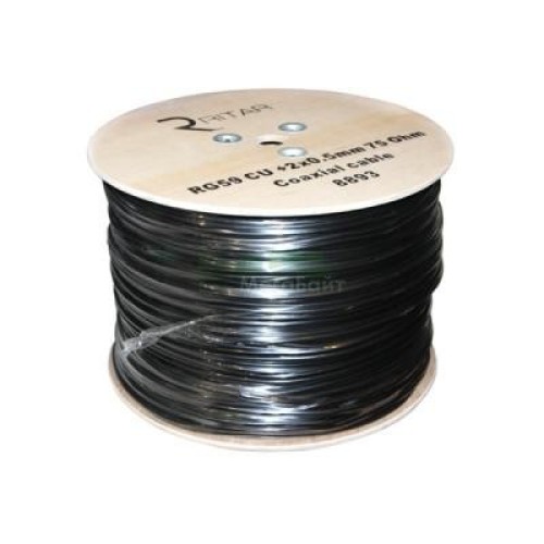 Кабель телевізійний Ritar RG-6, 1,02 мм.CU, 64x0.12m CCA экран, + 2*0.5 power, черный (RT-B305-RG690+2x0.5mm)