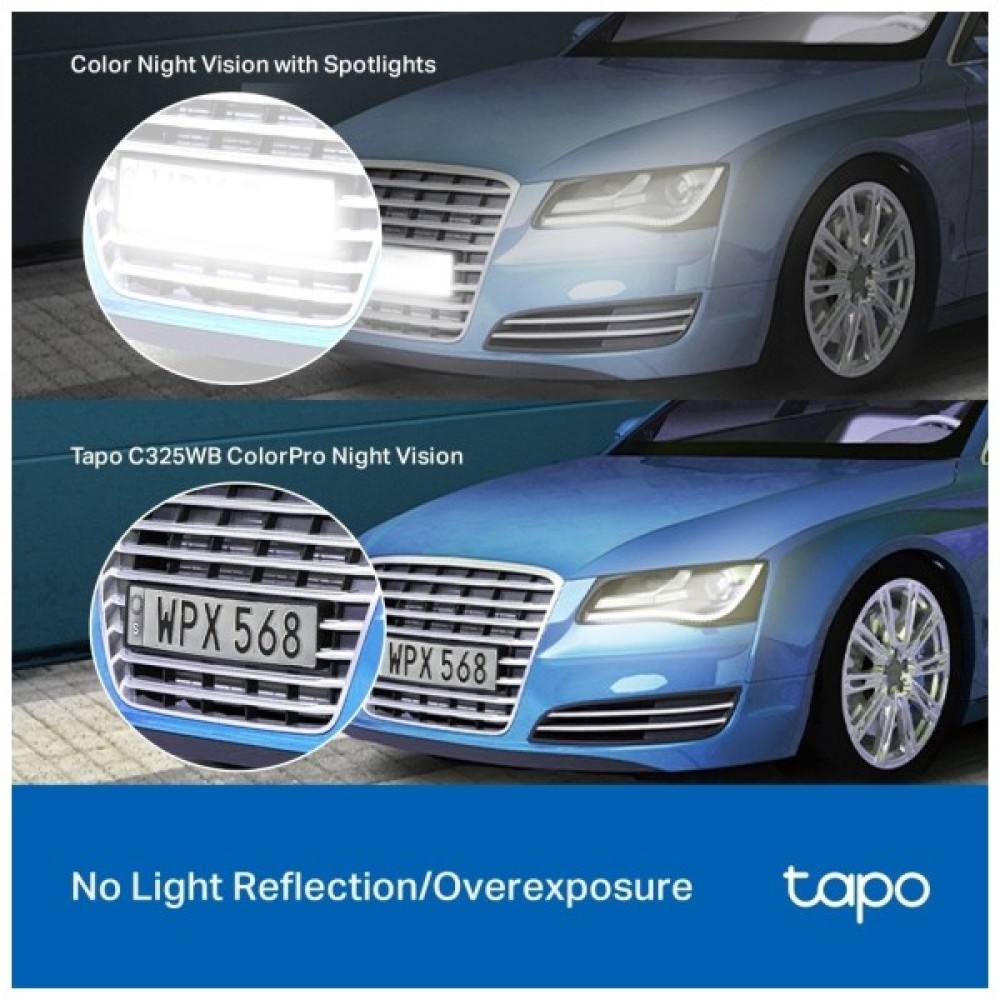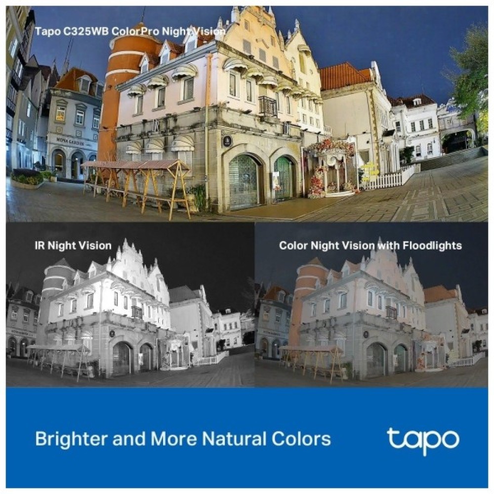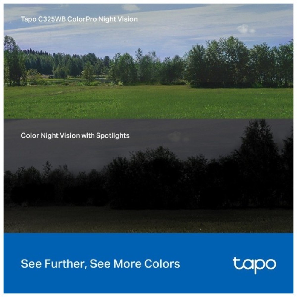На відміну від інших кольорових камер нічного бачення, які використовують прожектори, Tapo C325WB використовує технологію ColorPro у поєднанні з неймовірною роздільною здатністю 2688x1520, що забезпечує приголомшливі результати в умовах низької освітленості. Насолоджуйтесь більш природними кольорами, яскравішими зображеннями та чіткішими знімками навіть в умовах низької освітленості.