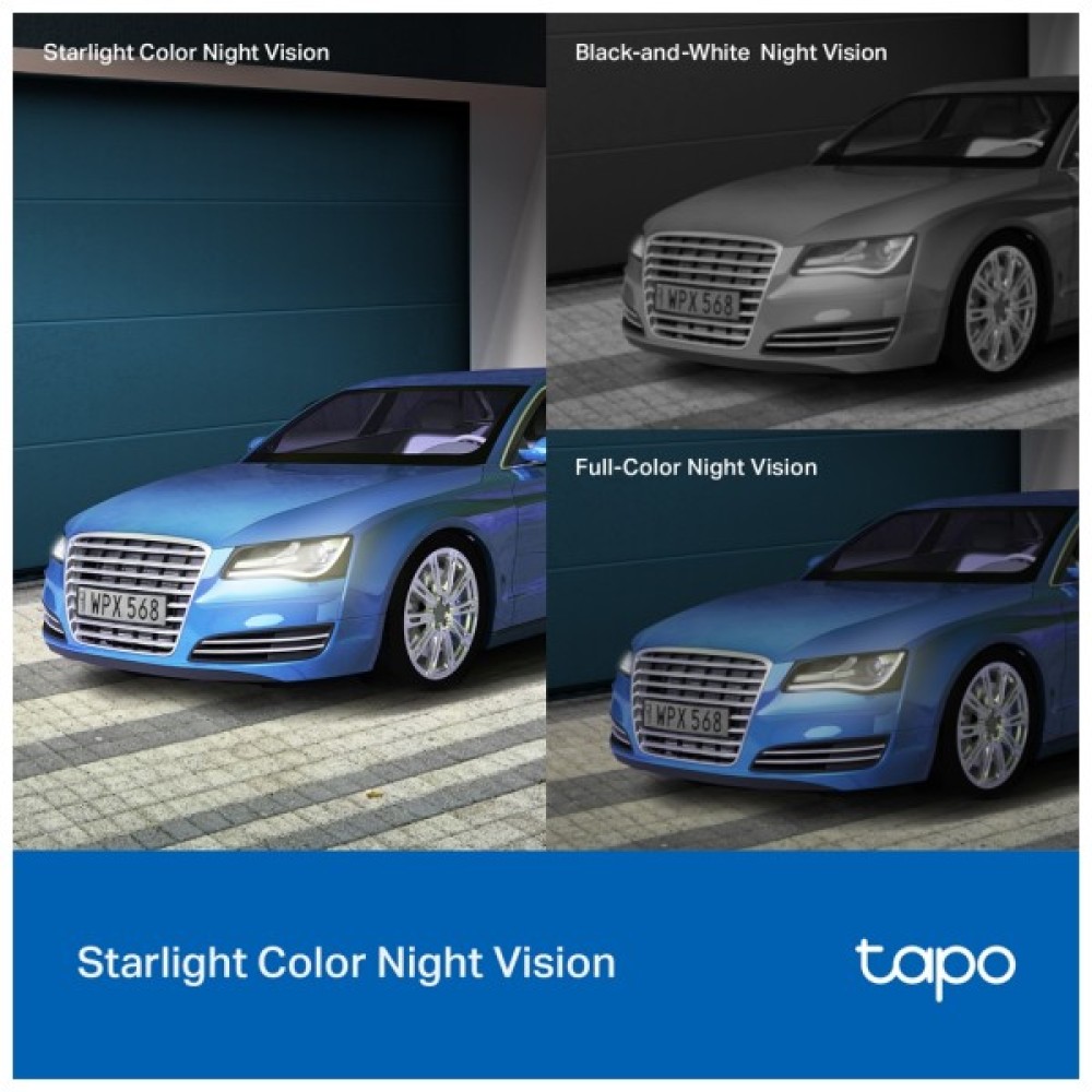 Однією з унікальних переваг є комбіноване підсвічування (ІЧ + LED), яке гарантує чудову видимість на відстані до 30 метрів навіть у повній темряві. Завдяки датчику Starlight, TAPO-C520WS відтворює зображення, які є яскравішими за більшість кольорових камер нічного бачення.