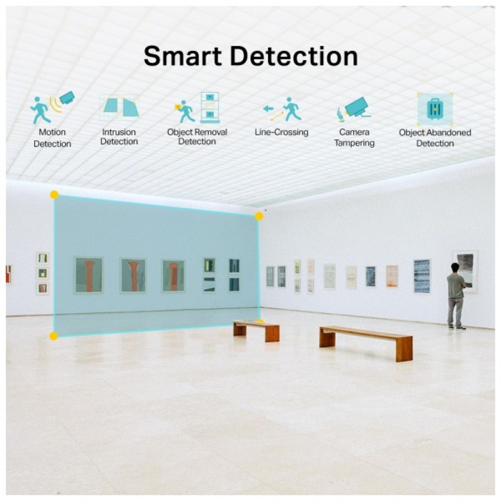 Інтелектуальні функції камери включають виявлення руху, розпізнавання транспортних засобів та людей, а також контроль входу/виходу з визначених зон. Вбудований мікрофон надає можливість вести не тільки відео-, але й аудіомоніторинг, що підвищує загальний рівень безпеки на об'єкті.