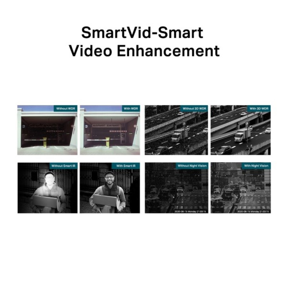 Для покращення якості зображення камера пропонує технології BLC, DWDR та HLC, які автоматично корегують яскравість і контрастність, забезпечуючи оптимальне висвітлення навіть у складних умовах освітлення. Завдяки функціям Smart IR, WDR, 3D DNR забезпечується висока якість відео навіть у низькоосвітлених умовах.