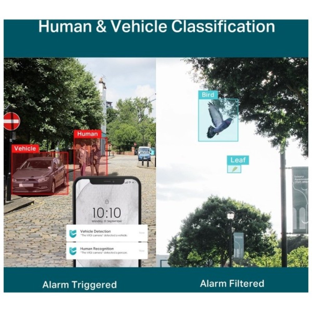 Камера TP-Link VIGI C340-W-4 підтримує функції аудіомоніторинга завдяки вбудованим мікрофону і динаміку, що дозволяє не лише спостерігати, але й чути, що відбувається на об'єкті. Важливою перевагою є розумні функції, такі як детекція людини, розпізнавання транспортних засобів, виявлення руху і контроль за перетином лінії чи виходом з контрольованої області. Це рішення особливо корисне для запобігання непередбачуваних ситуацій.