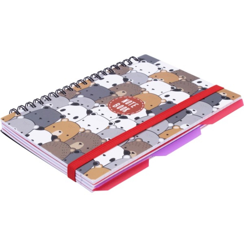 Блокнот формату B6 (122 x 177). Кріплення блока — спіраль. Обкладинка з гумкою, глянсовий пластик із повноколірним друком. Внутрішній блок — клітинка, щільність паперу — 65 г/м², кількість аркушів — 100. З переставними роздільниками блока.