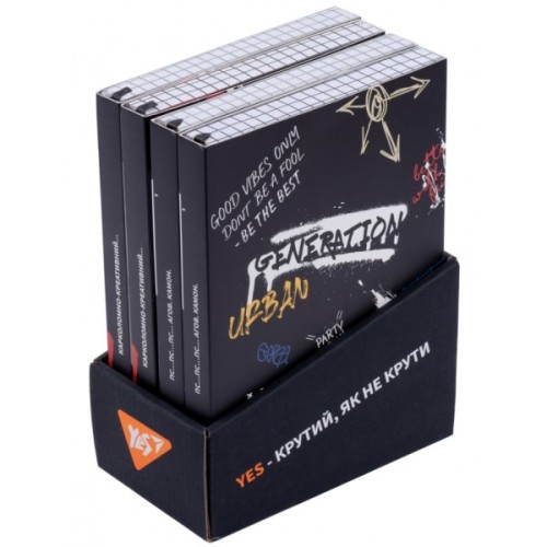 Щоденники колекції "Крутий, як крути", торгової марки Yes, в картонному дисплей боксі, мікс дизайнів.