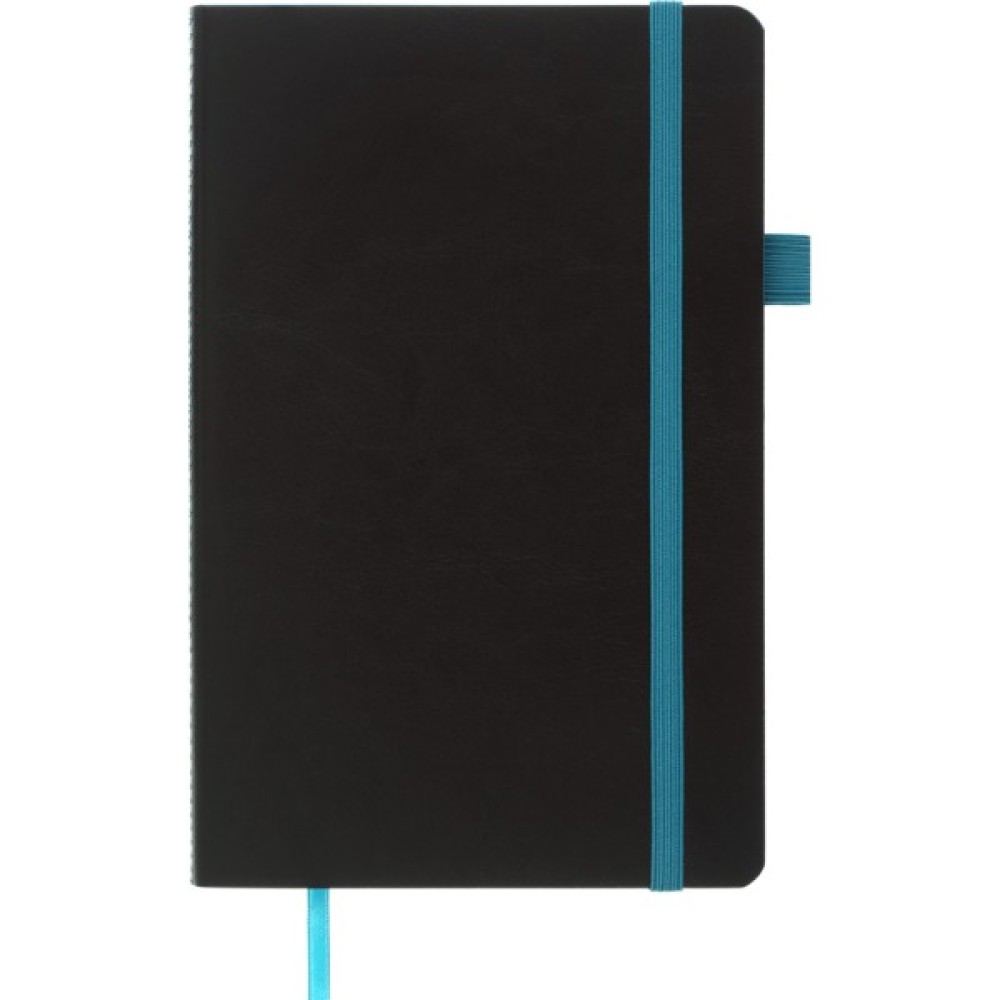 - Гнучка обкладинка з чорної структурної штучної шкіри з поздовжньою гумкою для фіксації в закритому стані