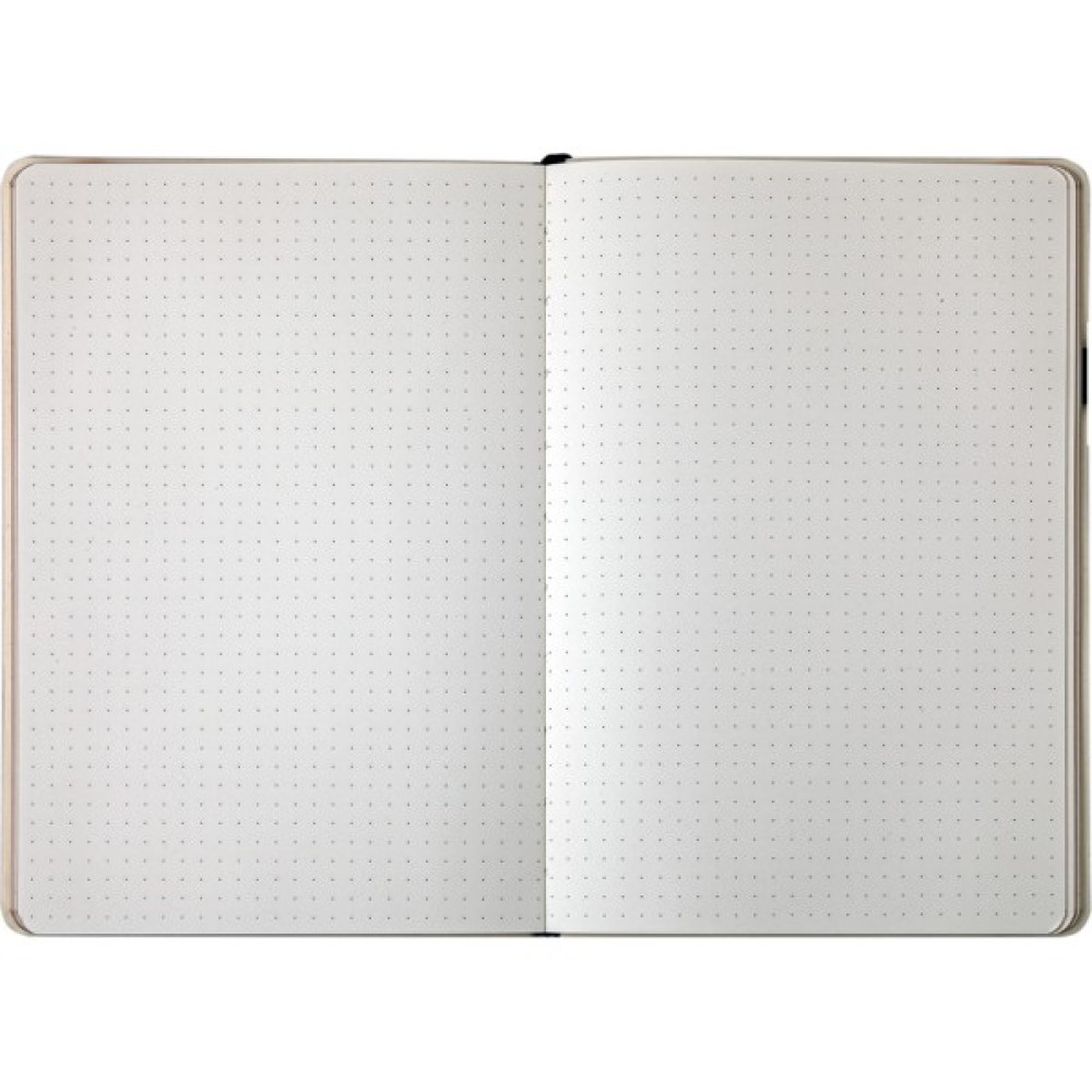 - Гнучка обкладинка з чорної структурної штучної шкіри з поздовжньою гумкою для фіксації в закритому стані
