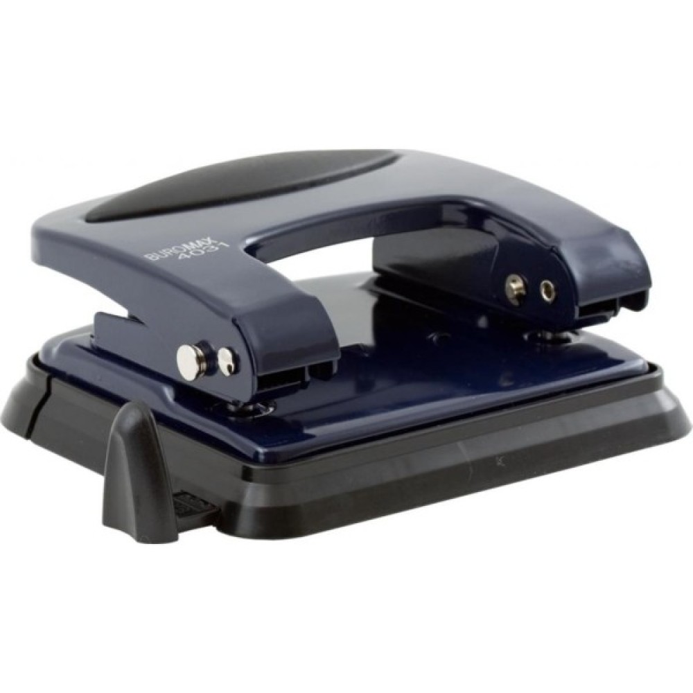 Корпус діркопробивача BUROMAX виготовлений з металу з накладкою на важелі, що запобігає ковзанню руки. Підошва оздоблена знімним пластиковим контейнером для збору відходів висічки і висувною лінійкою з форматною школою, а це точний результат і рівні стопки підшитих документів. Вбудований фіксатор закритого положення забезпечить зручне транспортування і зберігання.Металевий діркопробивач BUROMAX - легко і швидко проб'є заявлену кількість аркушів. Матеріал: металКолір: синійПробивна потужність: 30 аркушів 80 г/м2Діаметр пробивного отвору: 5,5 ммВідстань між пробивним отворами: 80 ммРозміри діркопробивача: 133х114х93мм Діркопробивачі BUROMAX - це якість і надійність!