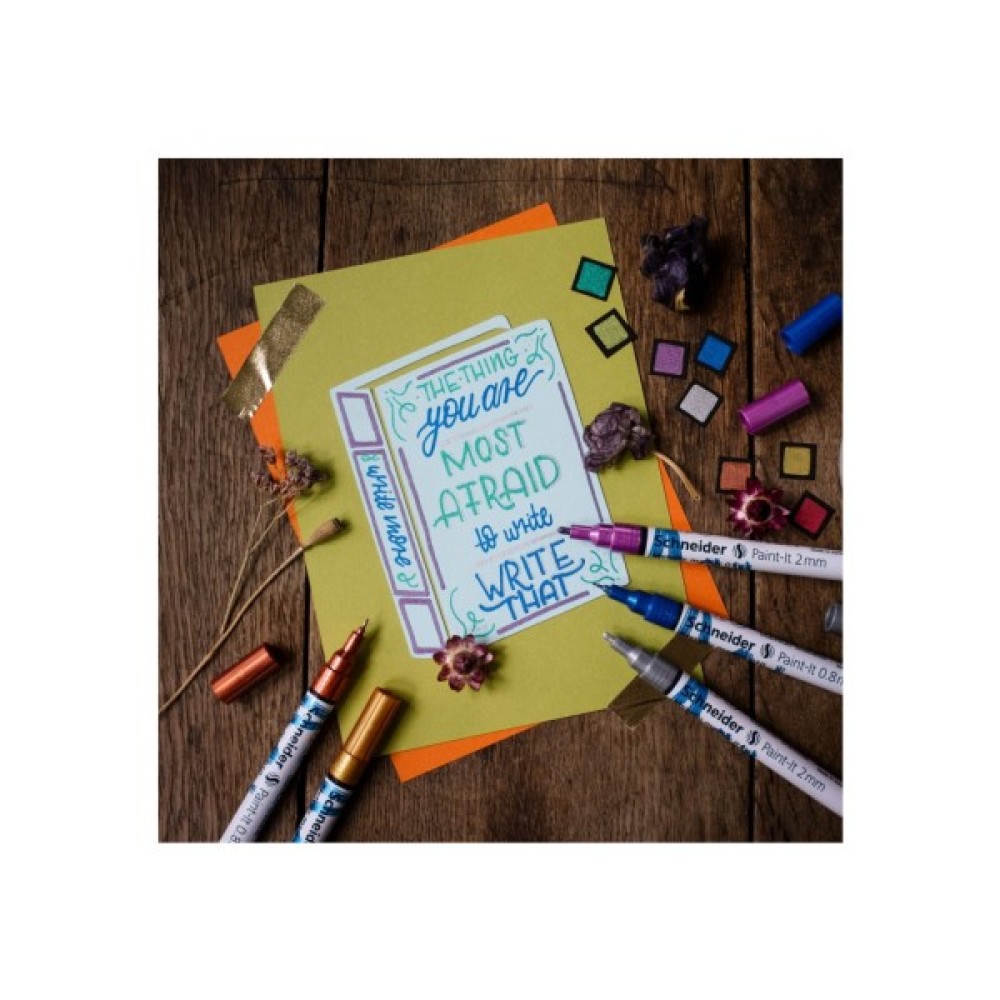 Набір металік маркерів для надзвичайних ефектів. Надає кожному проекту особливий вигляд. Ширина тонкої лінії прибл. 2,0 мм. Нова технологія пігменту забезпечує чисте та однорідне нанесення кольору. Алюмінієві лусочки, вкриті кольоровими пігментами, створюють сильний металевий ефект із надзвичайно високим рівнем блиску навіть при різному освітленні. Підходить для багатьох поверхонь. Чорнило, що швидко висихає, ідеально контролюється клапаном.