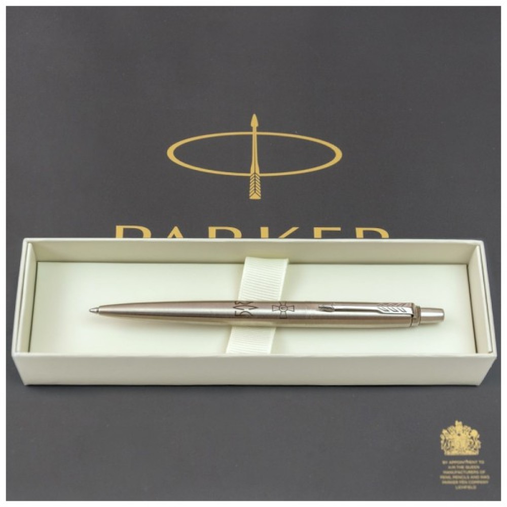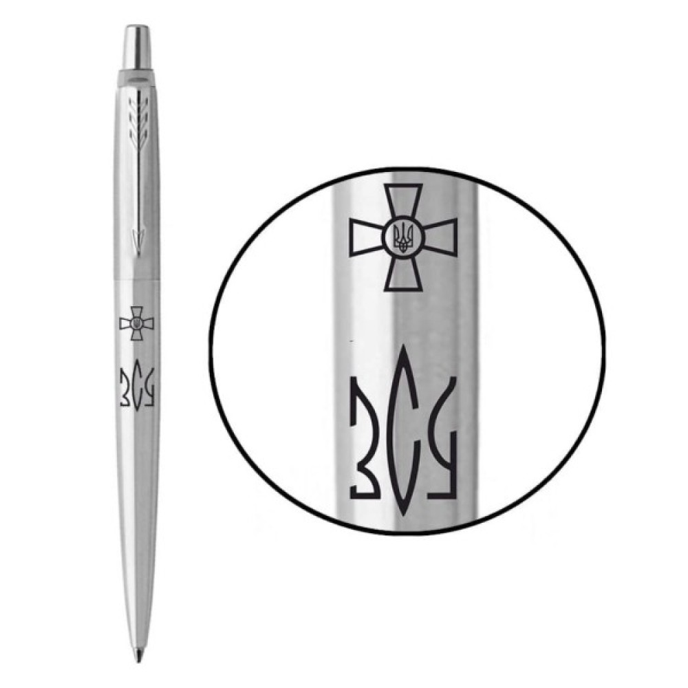 Оригінальна кулькова ручка Parker JOTTER Stainless Steel CT BP з гравіюванням емблеми Збройних сил України та абревіатурою ЗСУ, стилізованою під Герб України. Сталева ручка зі сталевим характером - знаковий подарунок для службовців Збройних сил України, гордих та волелюбних українців та всіх, хто захищає незалежність нашої держави.