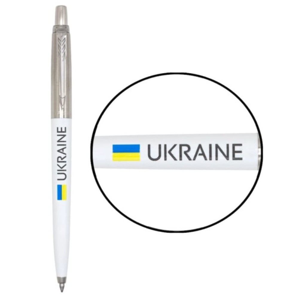 Кулькова ручка Parker JOTTER UKRAINE Originals White CT з кольоровим друком Прапора України та напису Ukraine. Завдяки персоналізованому дизайну з українською символікою продемонструє вашу гордість бути українцем та стане нетривіальним подарунком. Jotter з 1954 залишається найкращою ручкою для тих, кому потрібна проста і функціональна ручка для роботи, навчання.