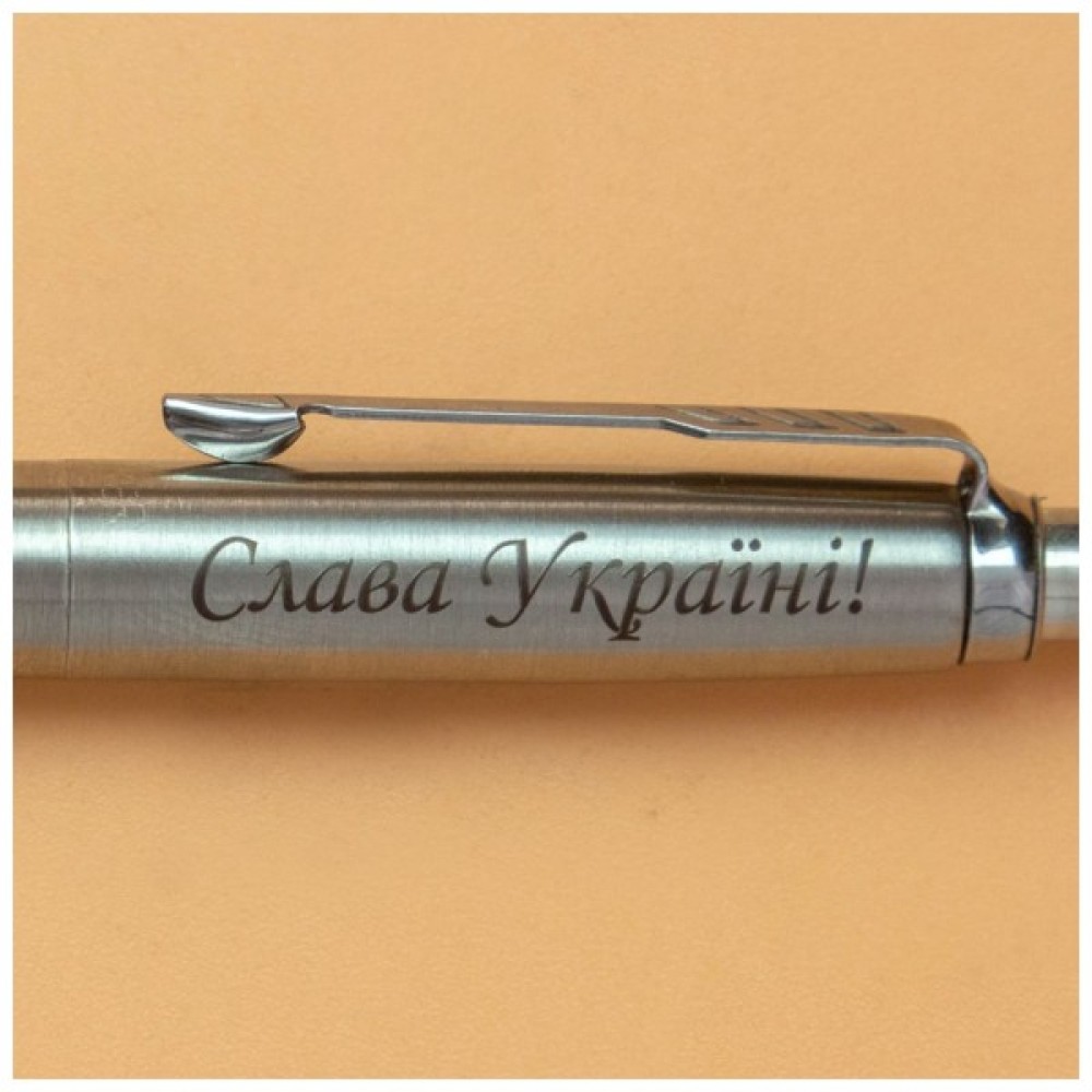 Оригінальна кулькова ручка Parker JOTTER Stainless Steel CT BP з потрійним гравіюванням: Тризуб + Слава Україні! + Героям Слава! Сталева ручка зі сталевим духом. Прекрасний подарунок для всіх гордих та волелюбних українців.