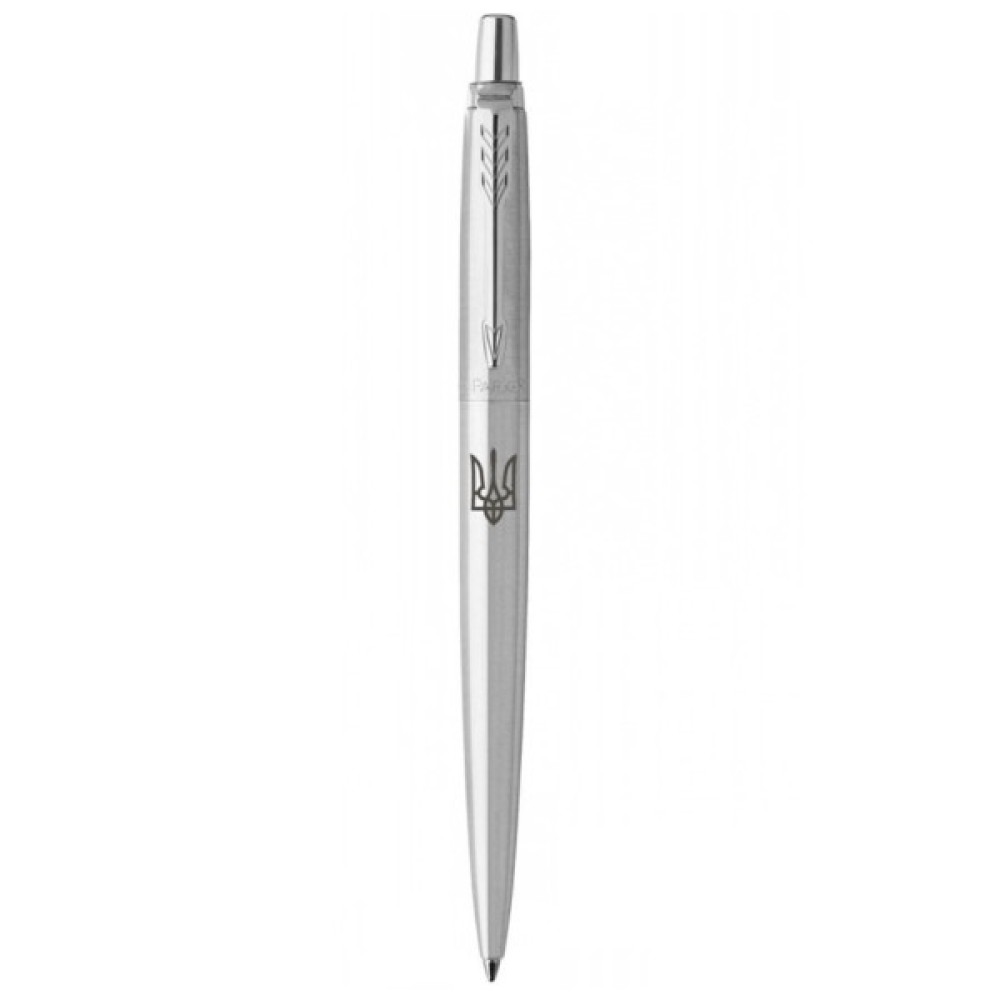 Ексклюзивний дизайн кулькової ручки JOTTER Stainless Steel CT BP з гравіюванням Герба України (Тризуб). Зображення нанесено на оригінальну ручку з серії Jotter (Джоттер). Культова модель Parker у суцільнометалевому дизайні. Зручність та продуктивність у доступній ціновій категорії. Ця модель стане чудовим подарунком до державних та національних свят для справжніх патріотів.