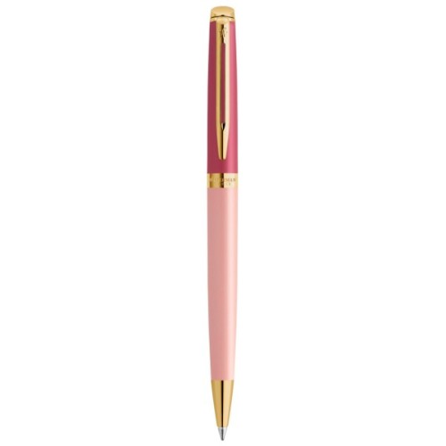 Жіноча кулькова ручка Waterman HEMISPHERE Colour Blocking Pink GT BP у двох відтінках рожевого кольору, що взаємодоповнюють один одного. Її вражаючу привабливість підкреслює класичний силует Hemisphere з косим торцем ковпачка, фірмовий подвійний затискач і приголомшливе оздоблення із золотим напиленням.