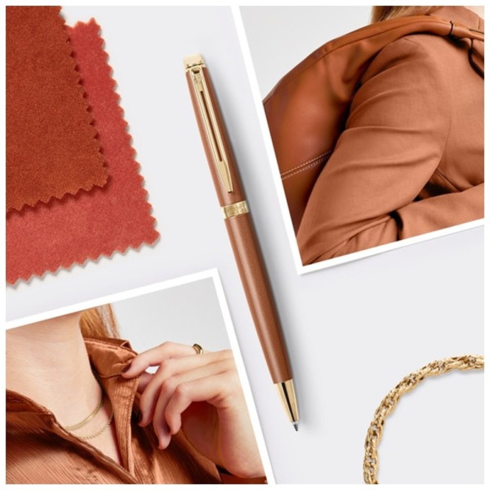 Кулькова ручка Waterman HEMISPHERE Metallic Copper Red GT BP з матовим покриттям мідно-коричневого кольору та позолоченими деталями. Нові кольори колекції HEMISPHERE Understated Edit із вишуканими відтінками втілюють модні паризькі тренди: нейтральні кольори з легким, але не глянцевим блиском. Характерний для колекції поворотний ковпачок (у кульковій ручці) зі скошеним краєм, гравіювання з назвою бренду на кільці та логотипа на затискачі. Відрізняється динамічним поєднанням таких елементів, як тонкий затискач та широке кільце, що підкреслюють чітко вузький дизайн.