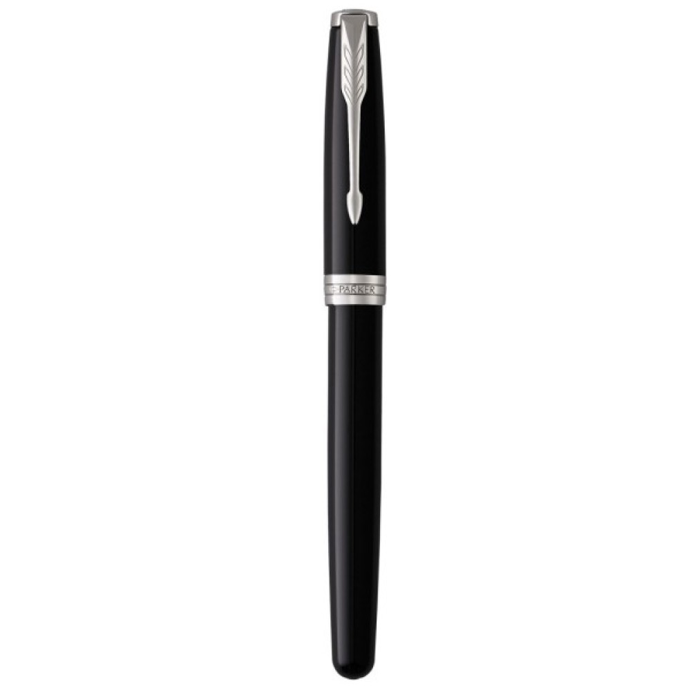 Parker SONNET Black Lacquer CT FP F 1931499 (чорний глянцевий дизайн з паладієвим оздобленням) - перова ручка з тонким сталевим пером. Представлена у найелегантнішій колекції – SONNET. Це винятковий інструмент для письма люкс класу. Преміальний дизайн із ювелірної латуні, щедро покритої гладким чорним лаком. Вся ця пишність доповнена оздобленням з дорогоцінного металу - паладію.